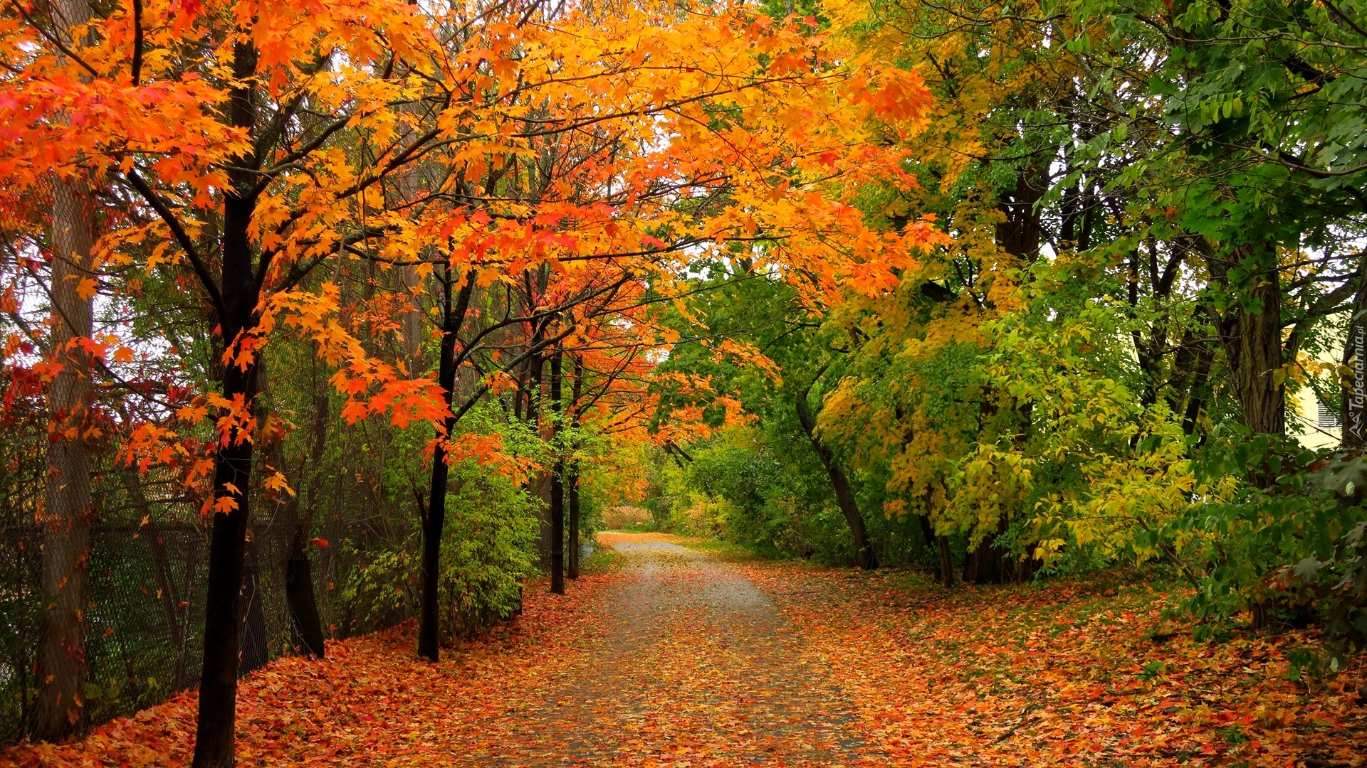 Edytor tapety: Opadłe liście na ścieżce w jesiennym parku