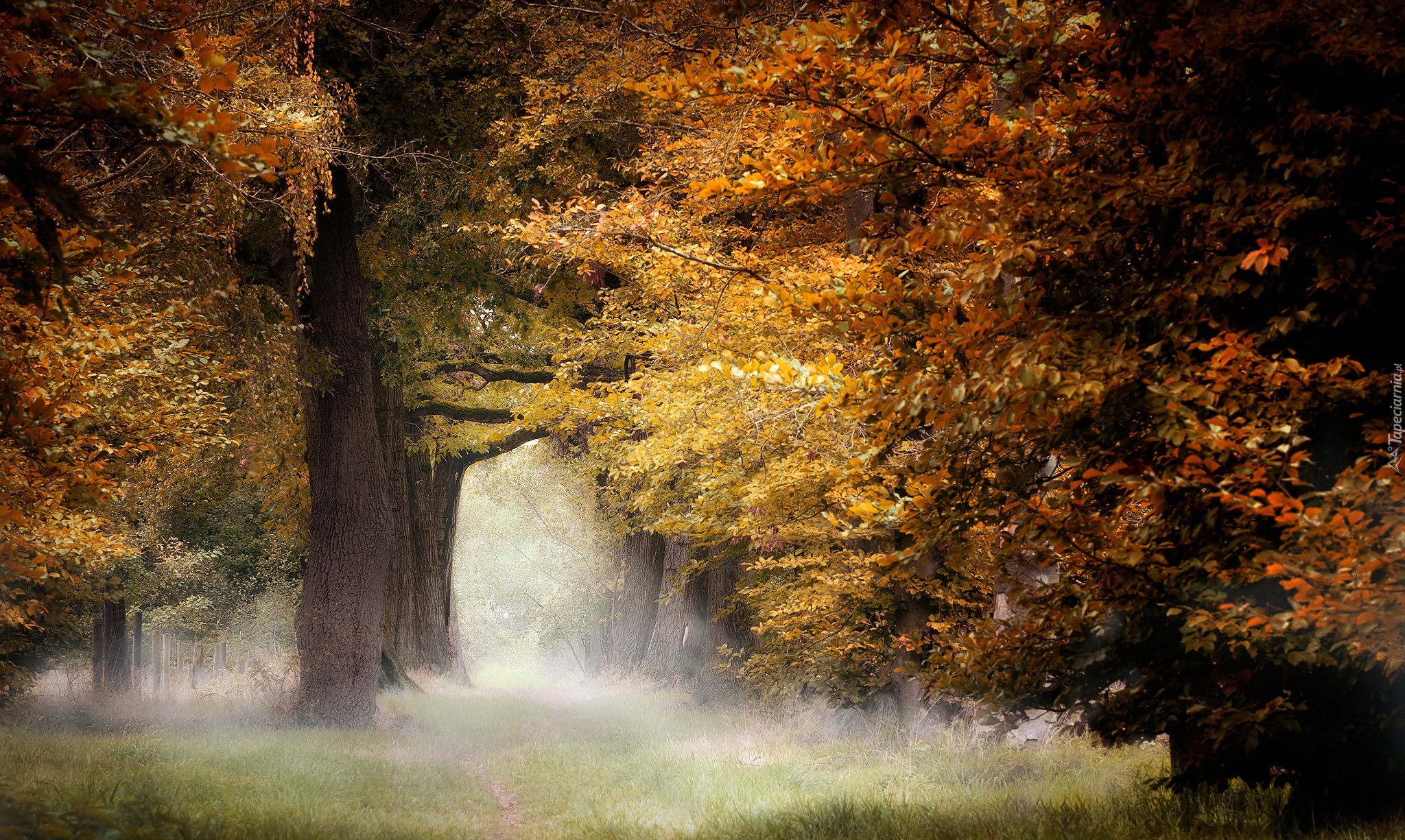 Edytor tapety: Zamglony jesienny las liściasty