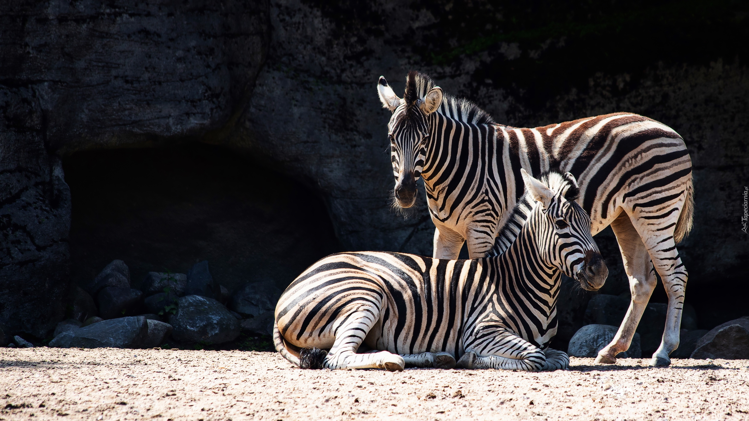 Edytor tapety: Dwie zebry przy skałach