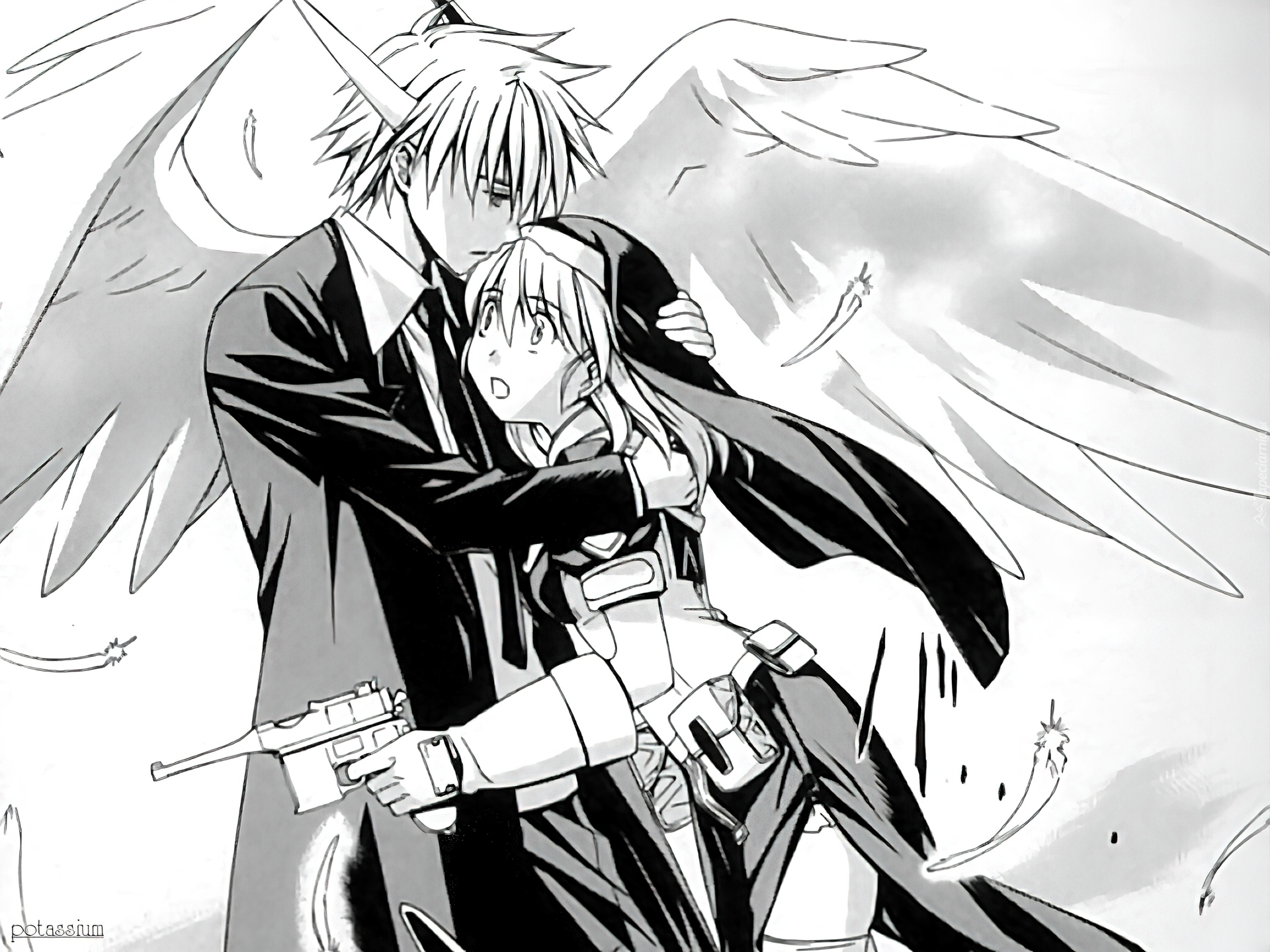 Edytor tapety: Chrono Crusade, postacie, pistolet, skrzydła