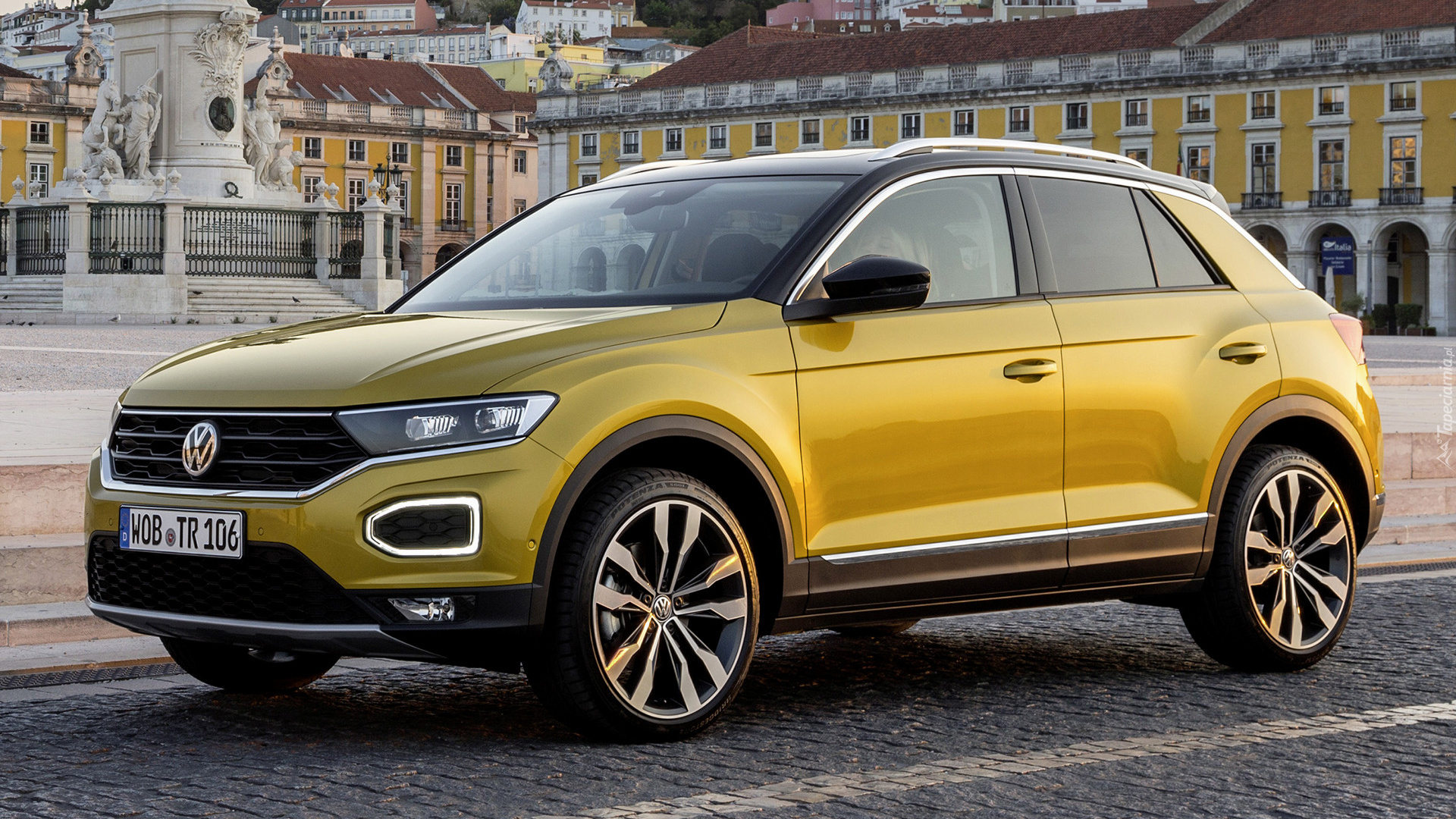 Edytor tapety: Żółty Volkswagen T-Roc bokiem