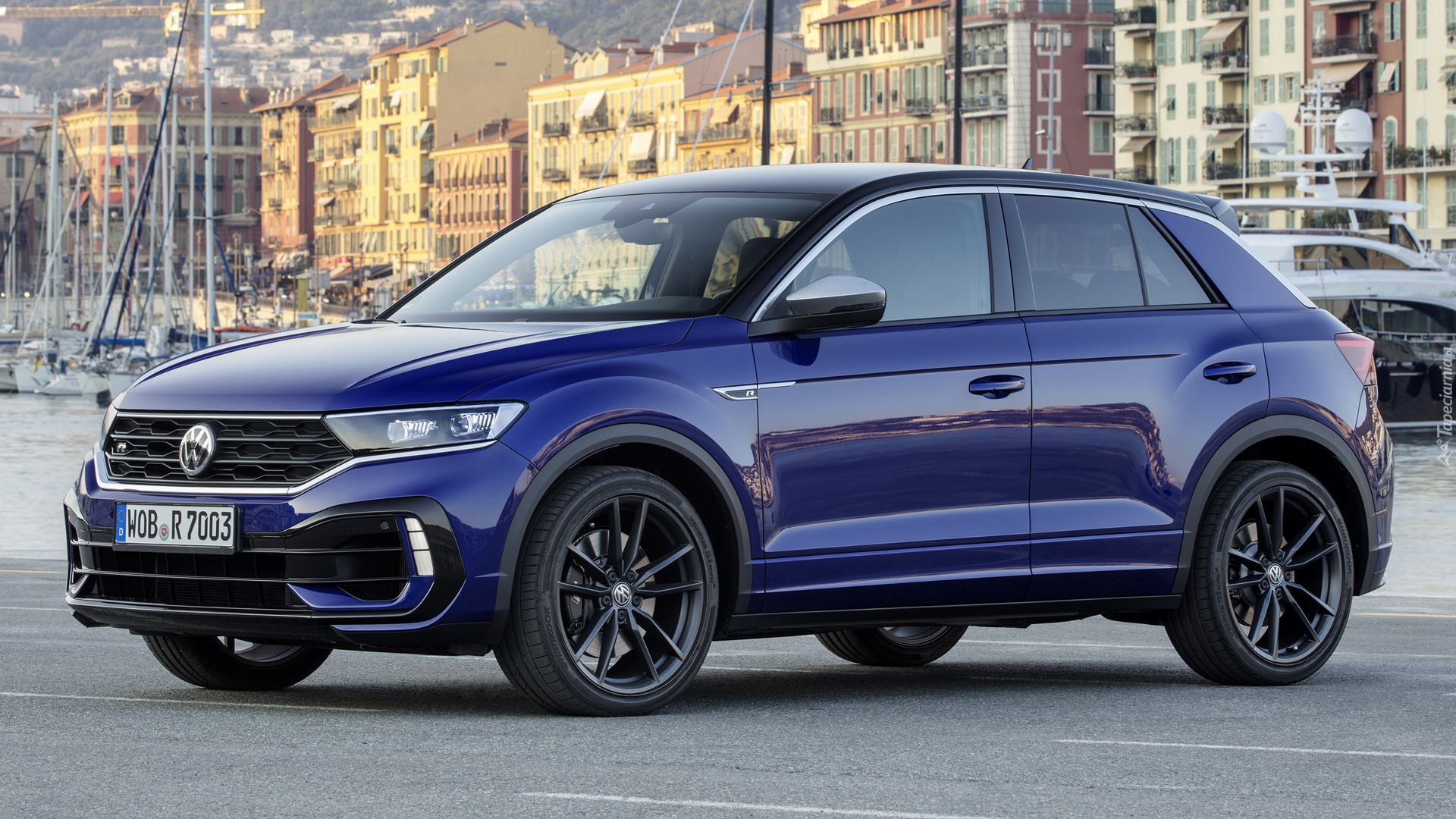 Edytor tapety: Niebieski Volkswagen T-Roc bokiem