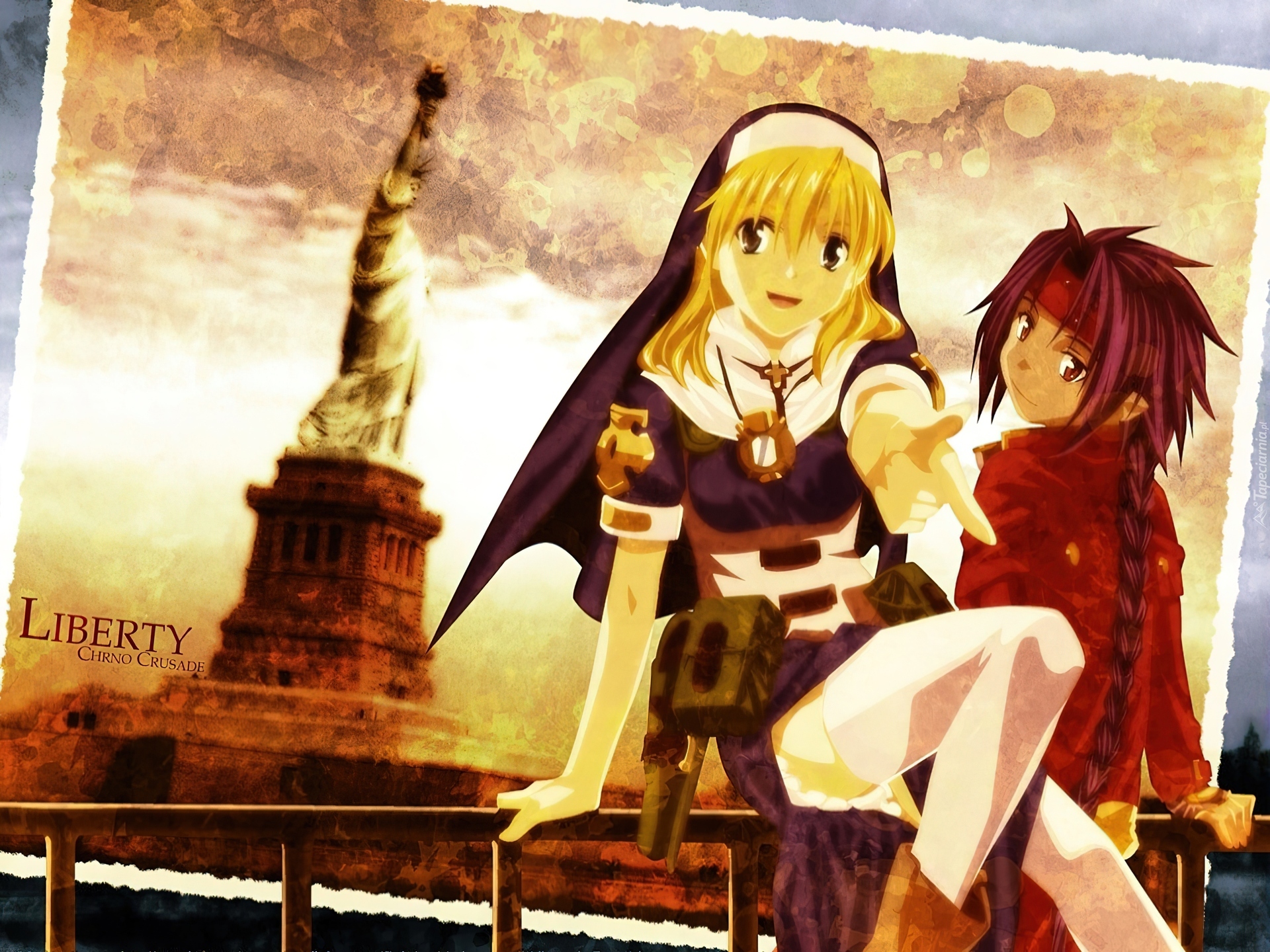 Edytor tapety: Chrono Crusade, statua wolności, osoby