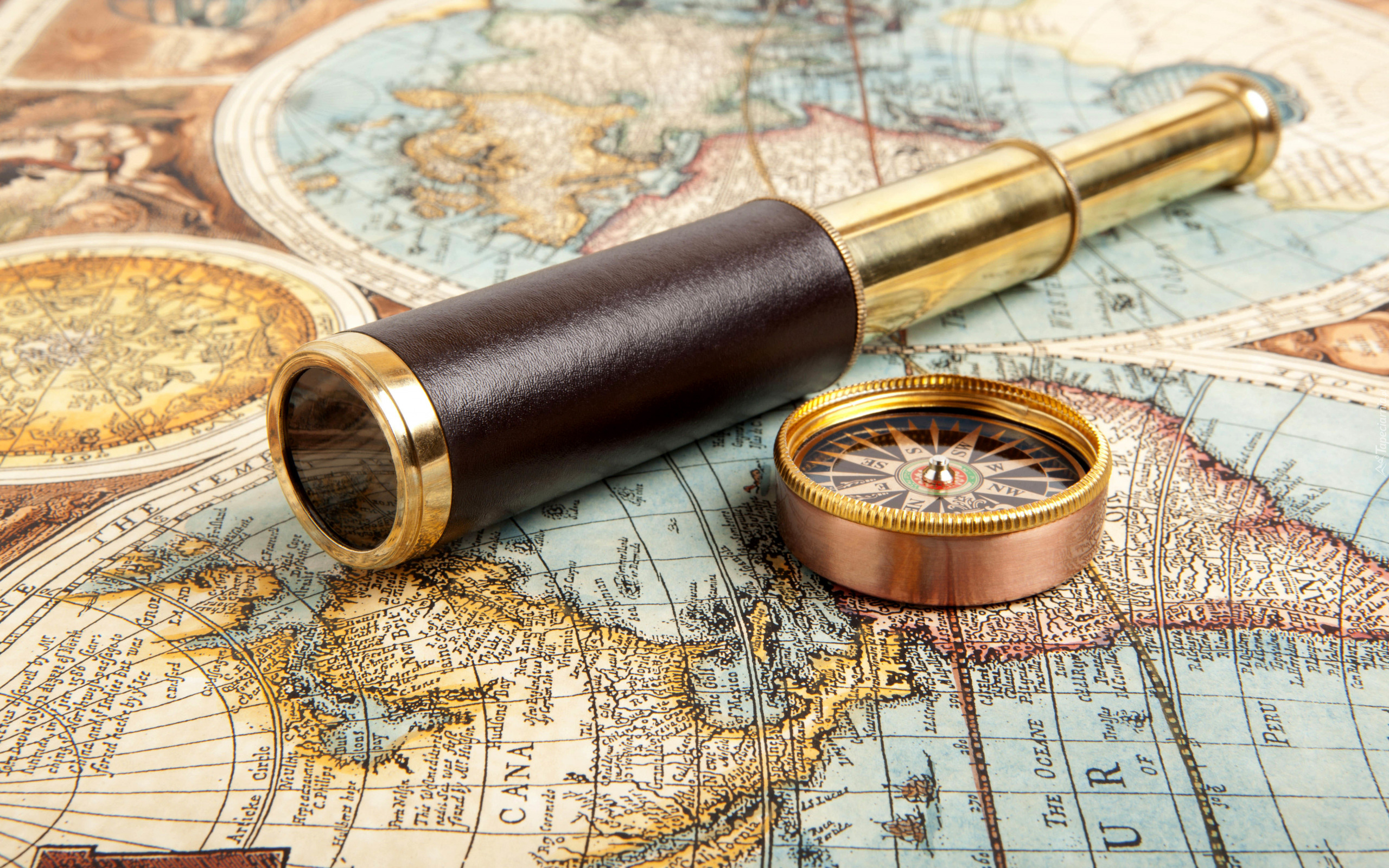 Edytor tapety: Luneta i kompas na mapie