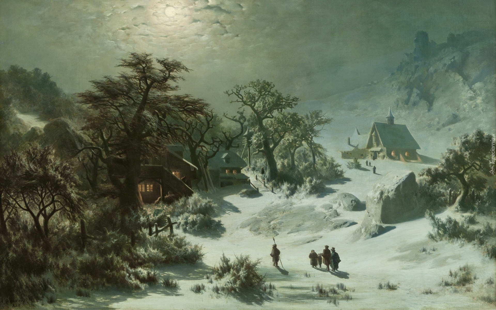 Edytor tapety: Zima na wsi na obrazie Adolfa Kosarka