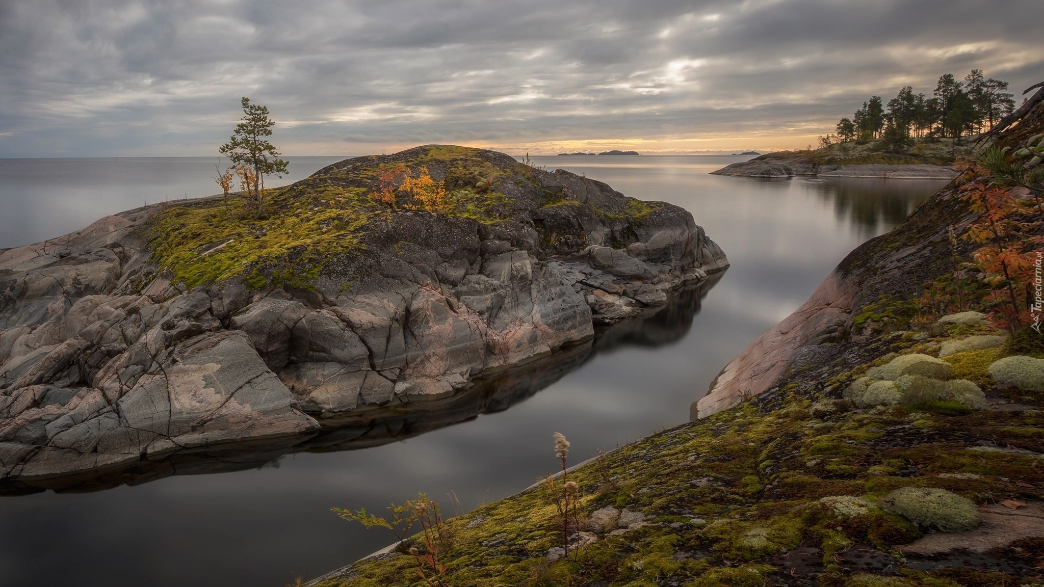 Edytor tapety: Drzewa na skalnych wysepkach jeziora Ładoga