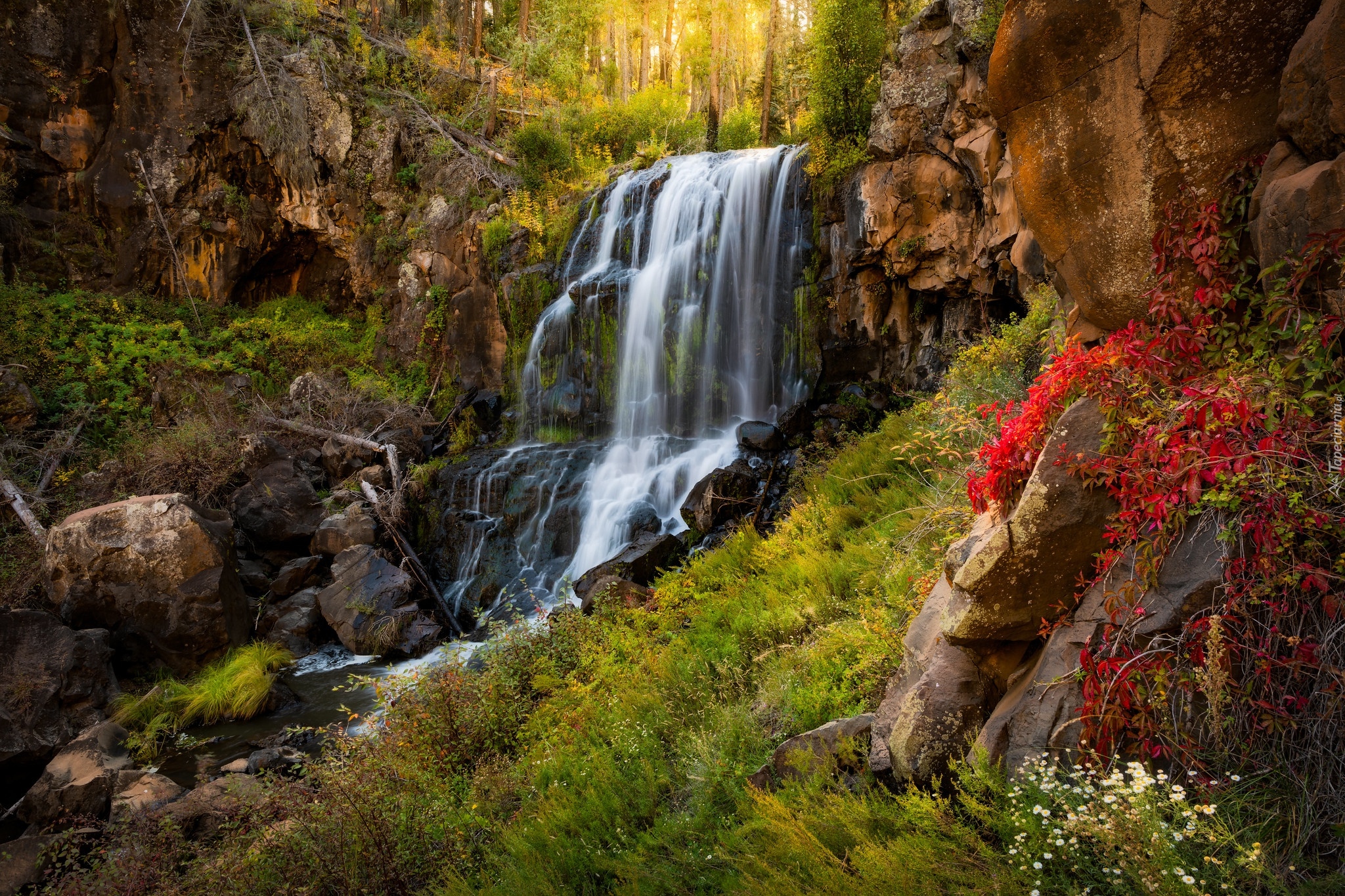 Edytor tapety: Skalny wodospad otoczony roślinnością