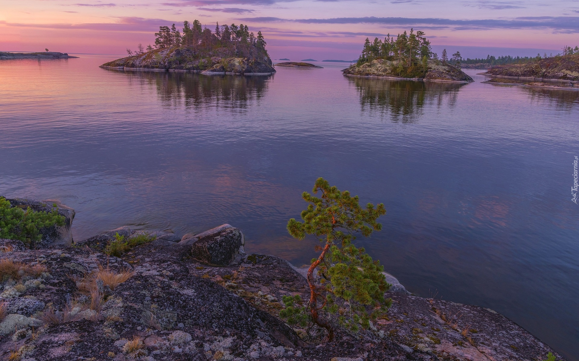 Edytor tapety: Wysepki z drzewami na jeziorze Ładoga