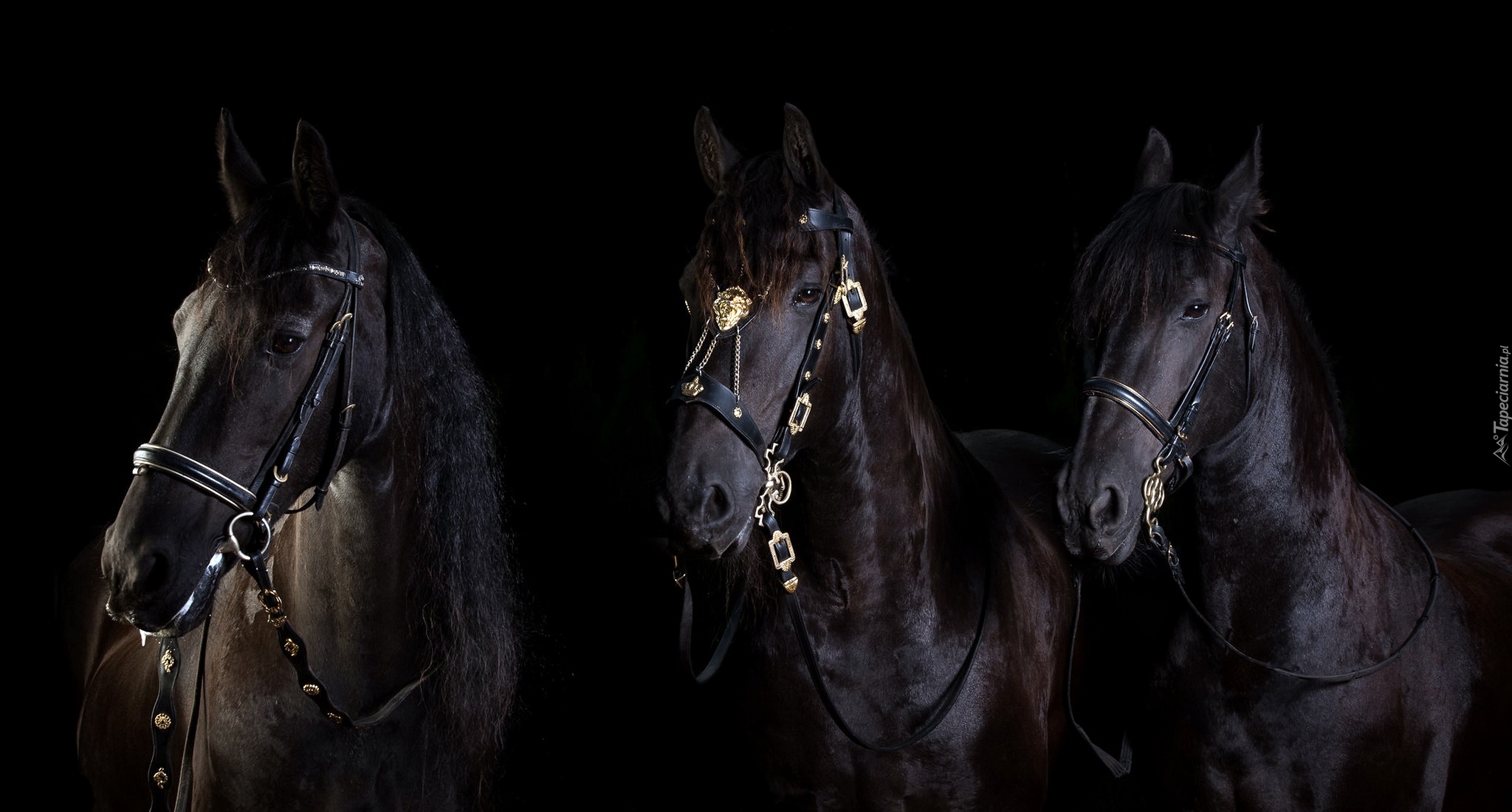 Edytor tapety: Trzy kare konie na czarnym tle