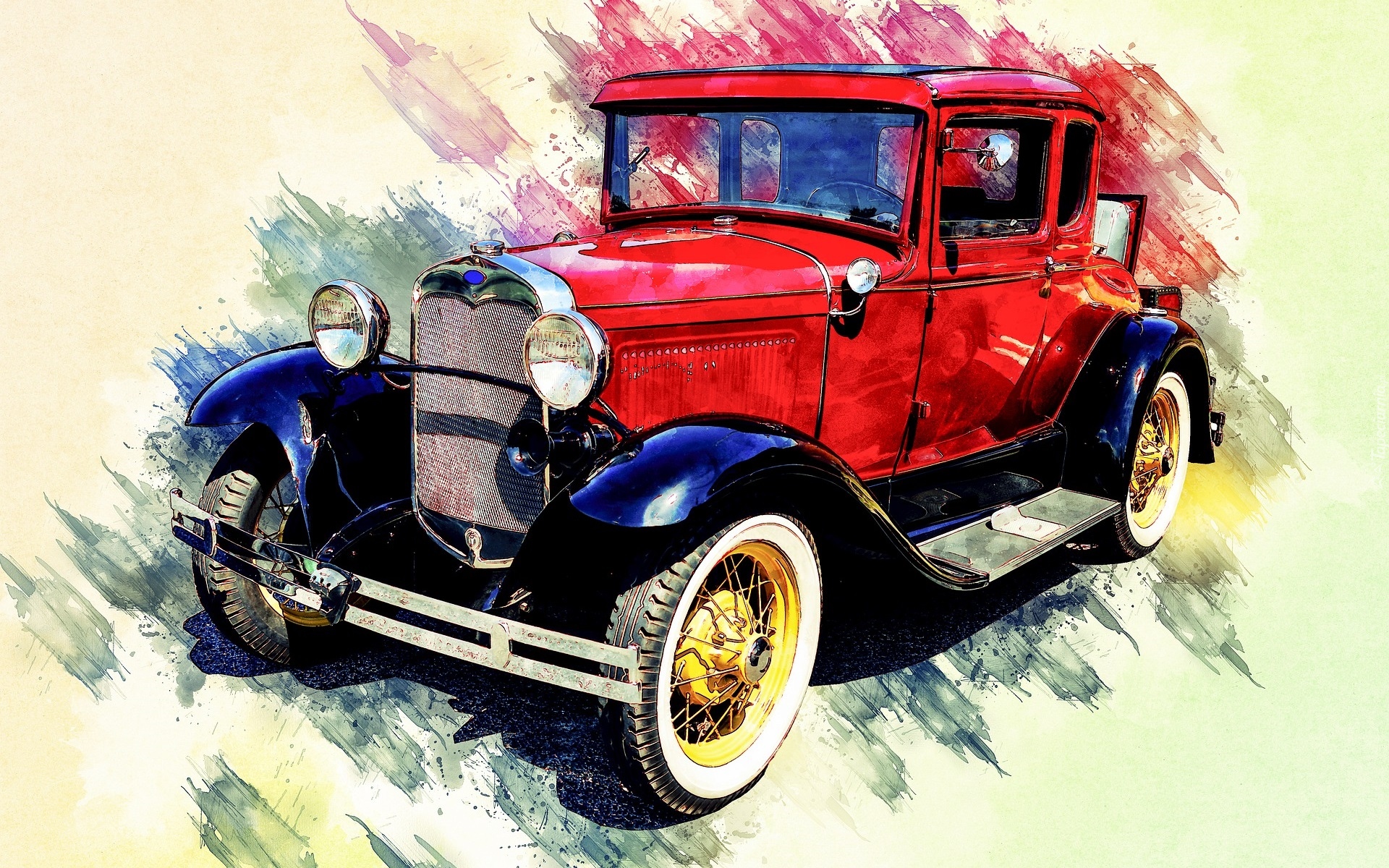 Edytor tapety: Zabytkowy czerwony samochód w grafice