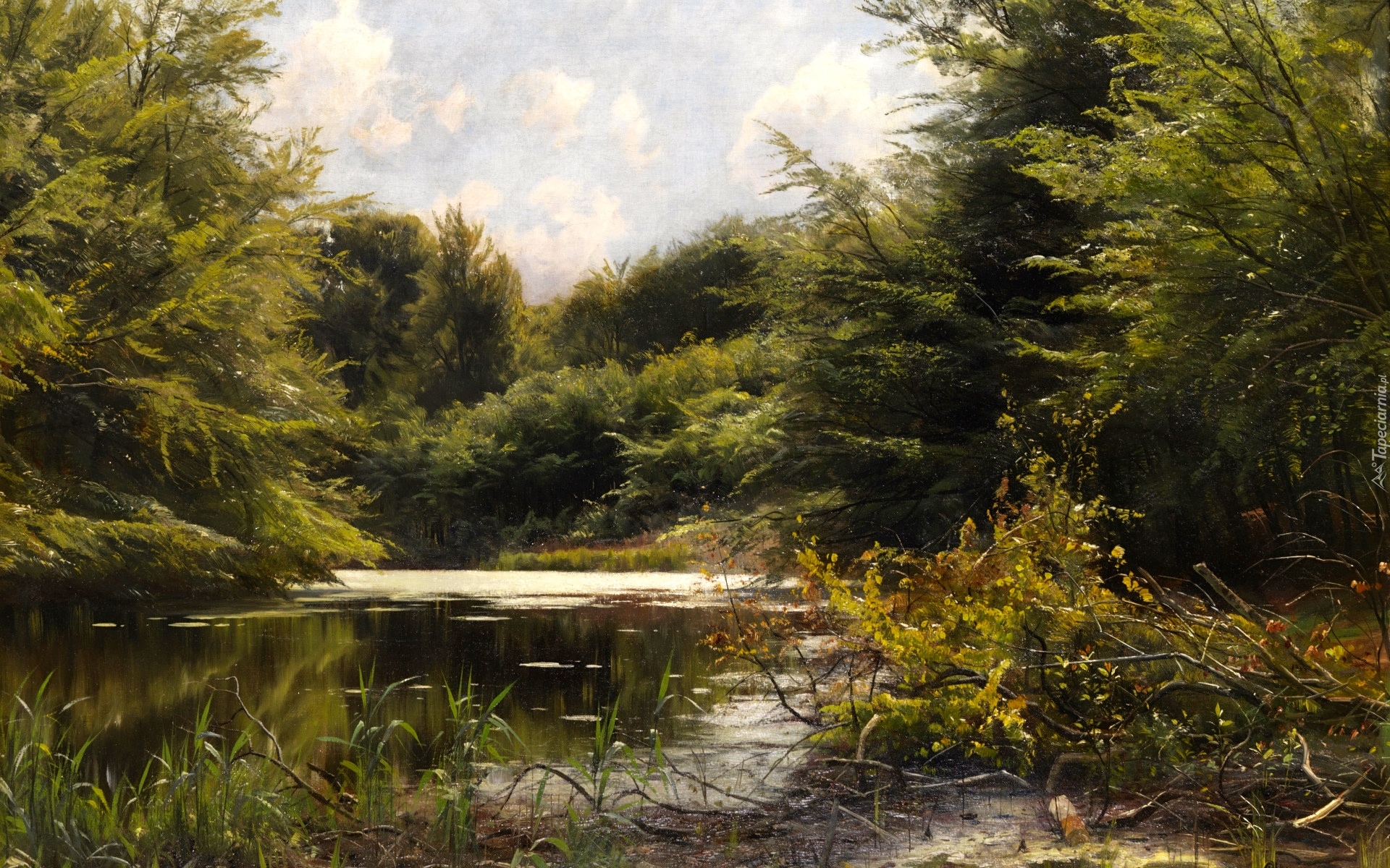 Edytor tapety: Drzewa i rzeka w malarstwie Pedera Monsteda