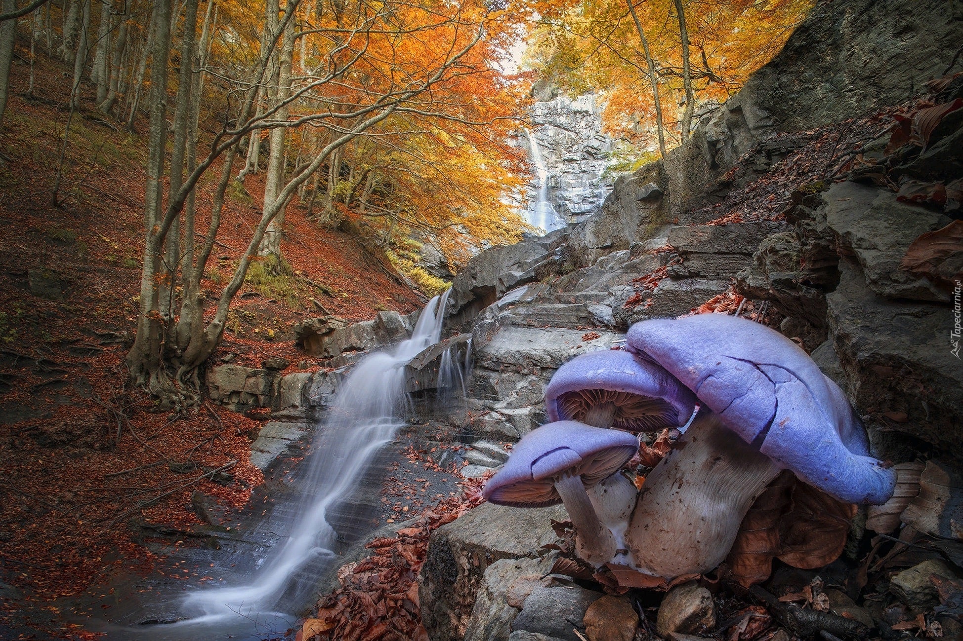 Edytor tapety: Grzyby na skale w jesiennym lesie