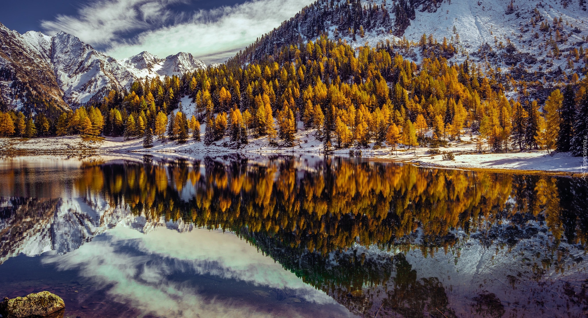 Edytor tapety: Ośnieżone Alpy nad jeziorem Duisitzkarsee