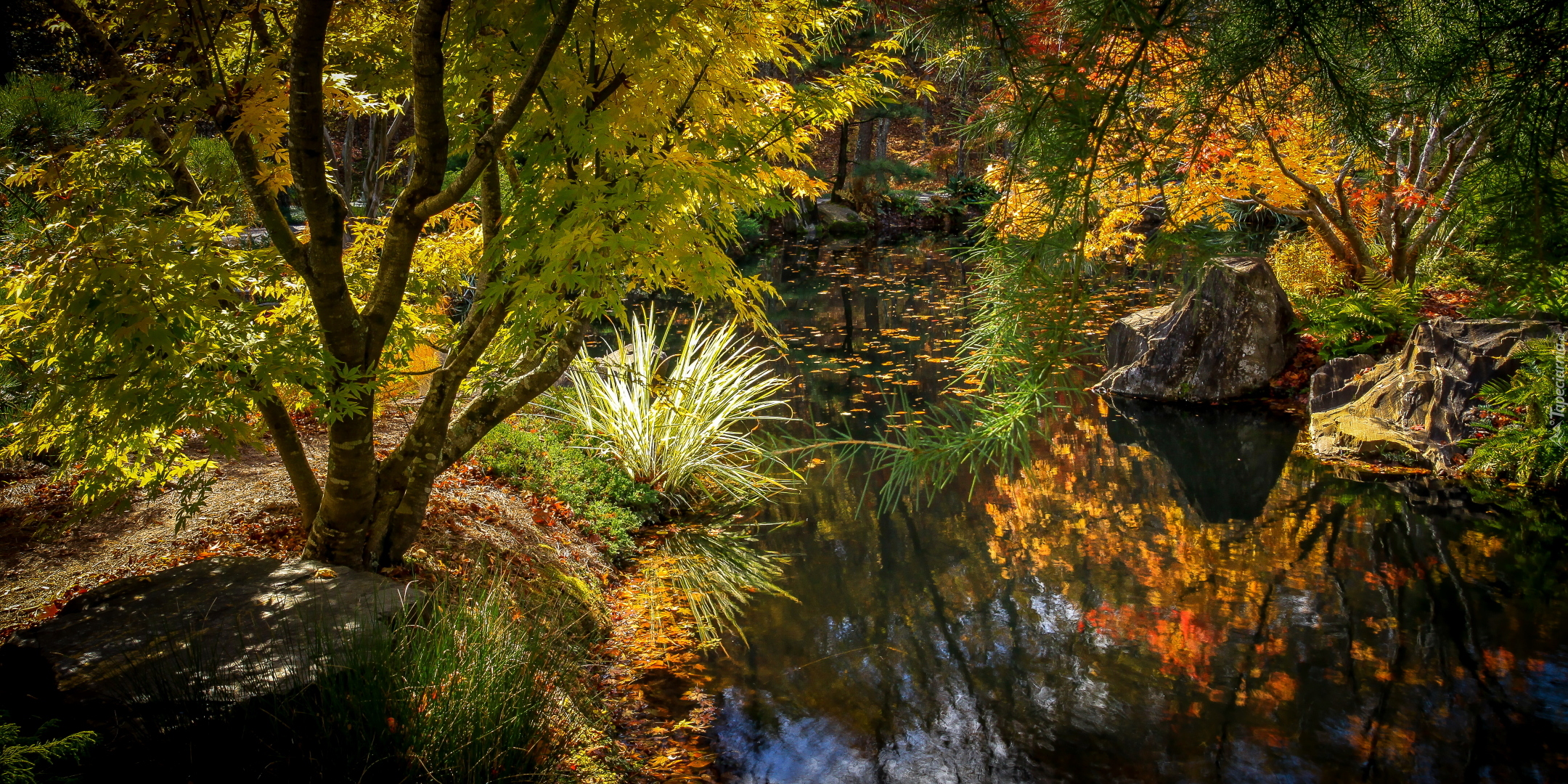 Edytor tapety: Staw pośród jesiennych roślin w parku