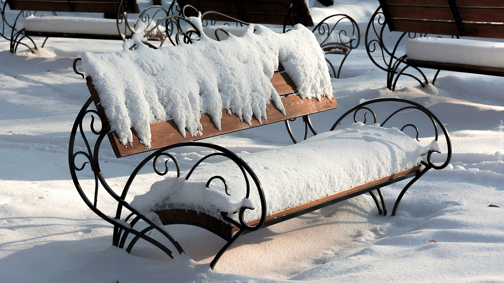 Edytor tapety: Ławka pokryta śniegiem