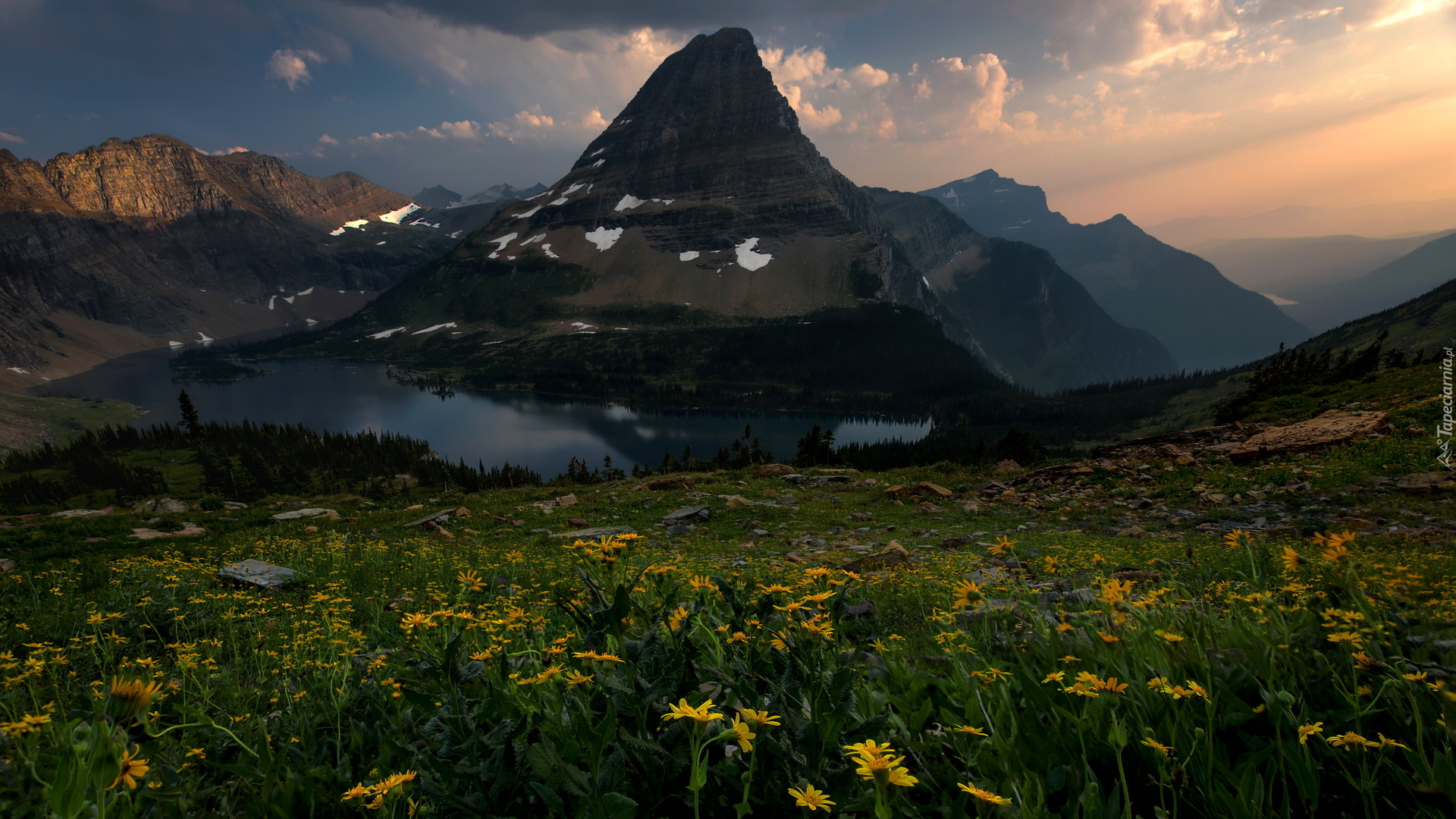 Edytor tapety: Jezioro Hidden u podnóża góry Bearhat w Montanie