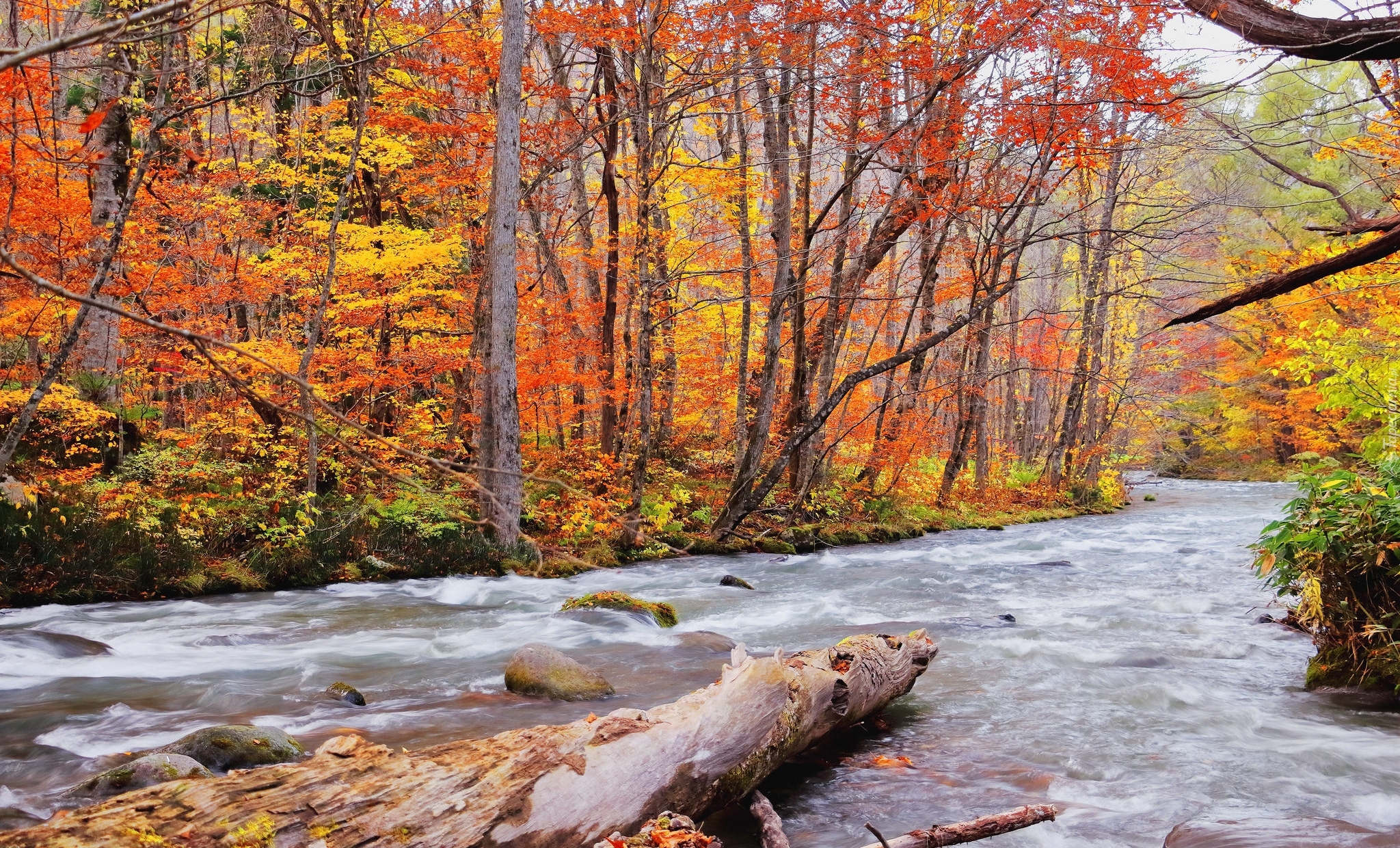 Edytor tapety: Kolorowe drzewa wzdłuż rzeki