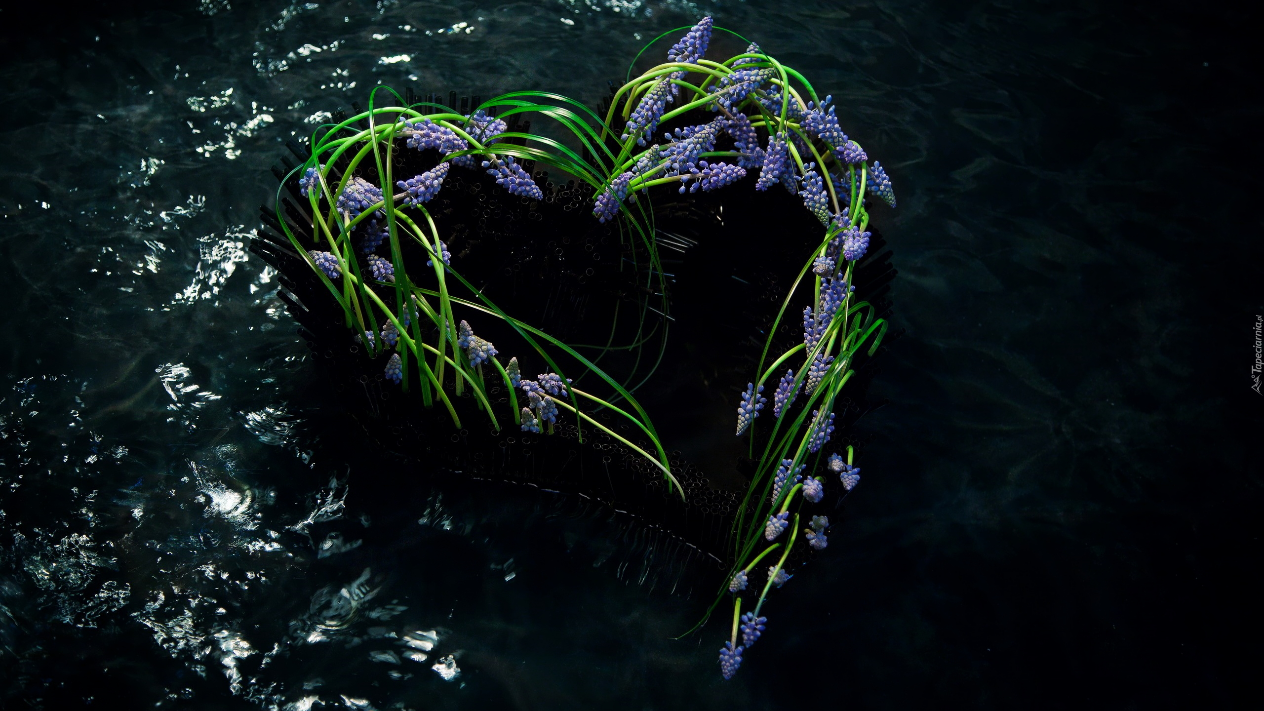 Edytor tapety: Serce z szafirków ułożone na wodzie