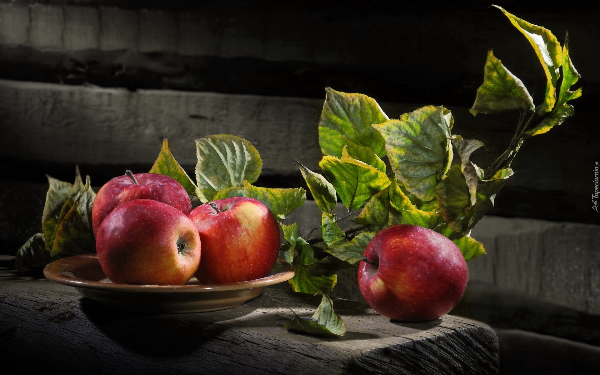 Edytor tapety: Rumiane jabłka na talerzu