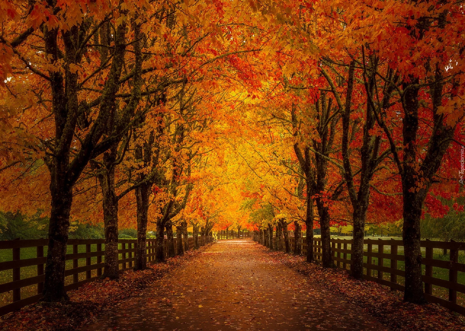 Edytor tapety: Jesienne kolorowe klony przy ogrodzeniu w parku