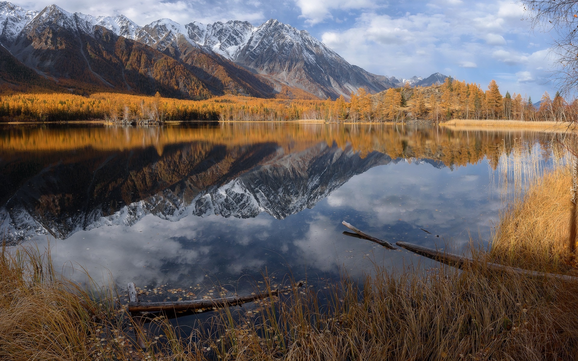 Edytor tapety: Jesienne drzewa nad jeziorem w Górach Katuńskich