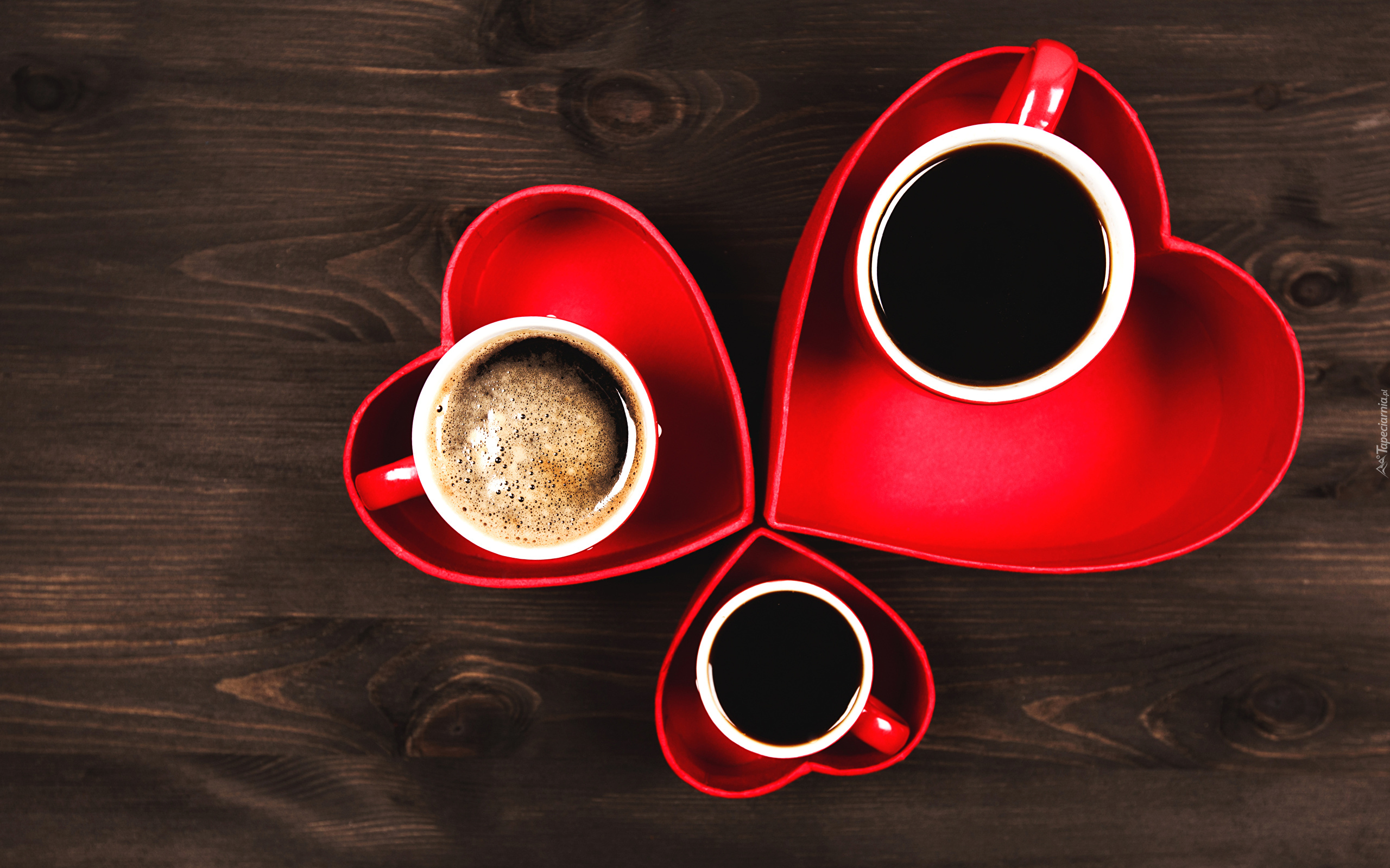 Edytor tapety: Kubki z kawą na talerzykach w kształcie serca