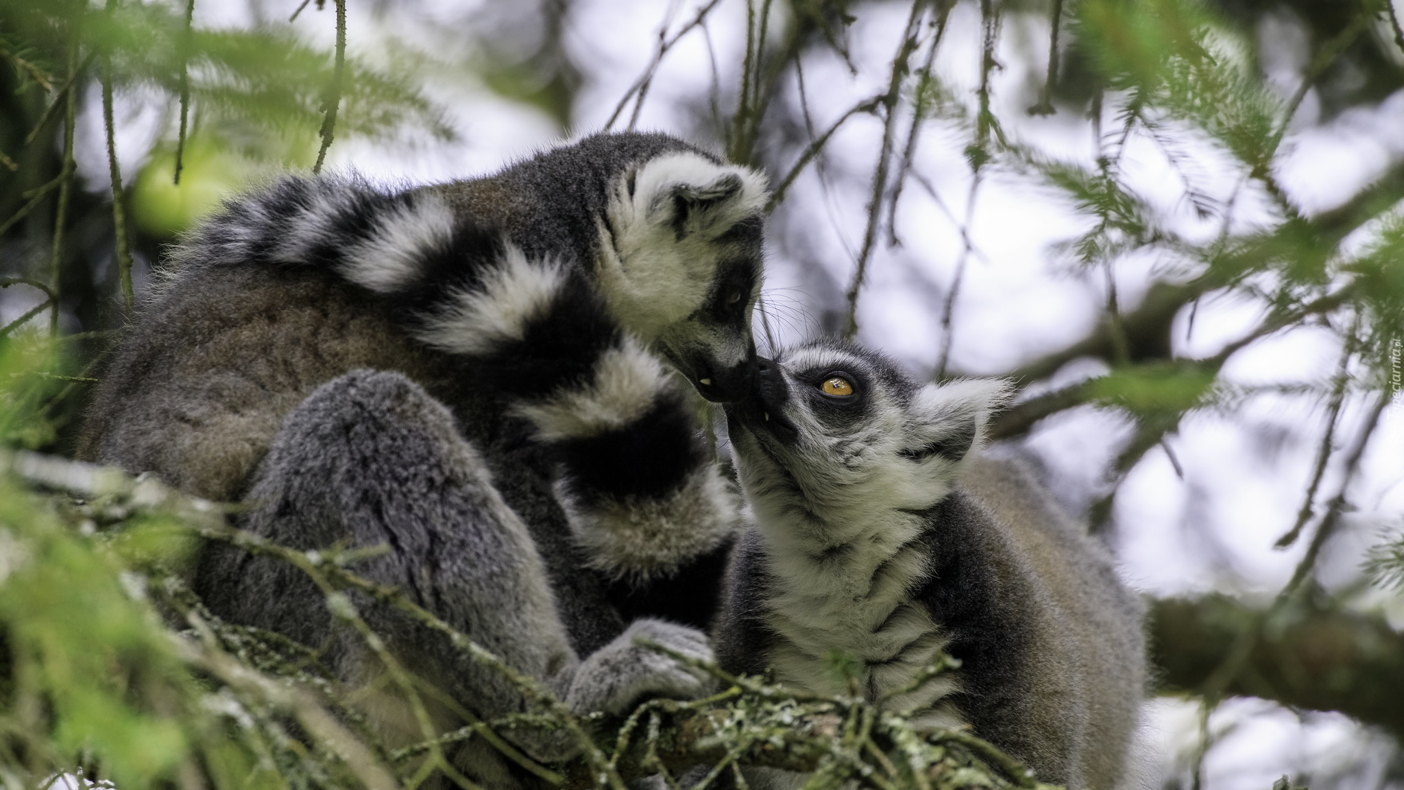 Edytor tapety: Dwa lemury katta na gałęziach