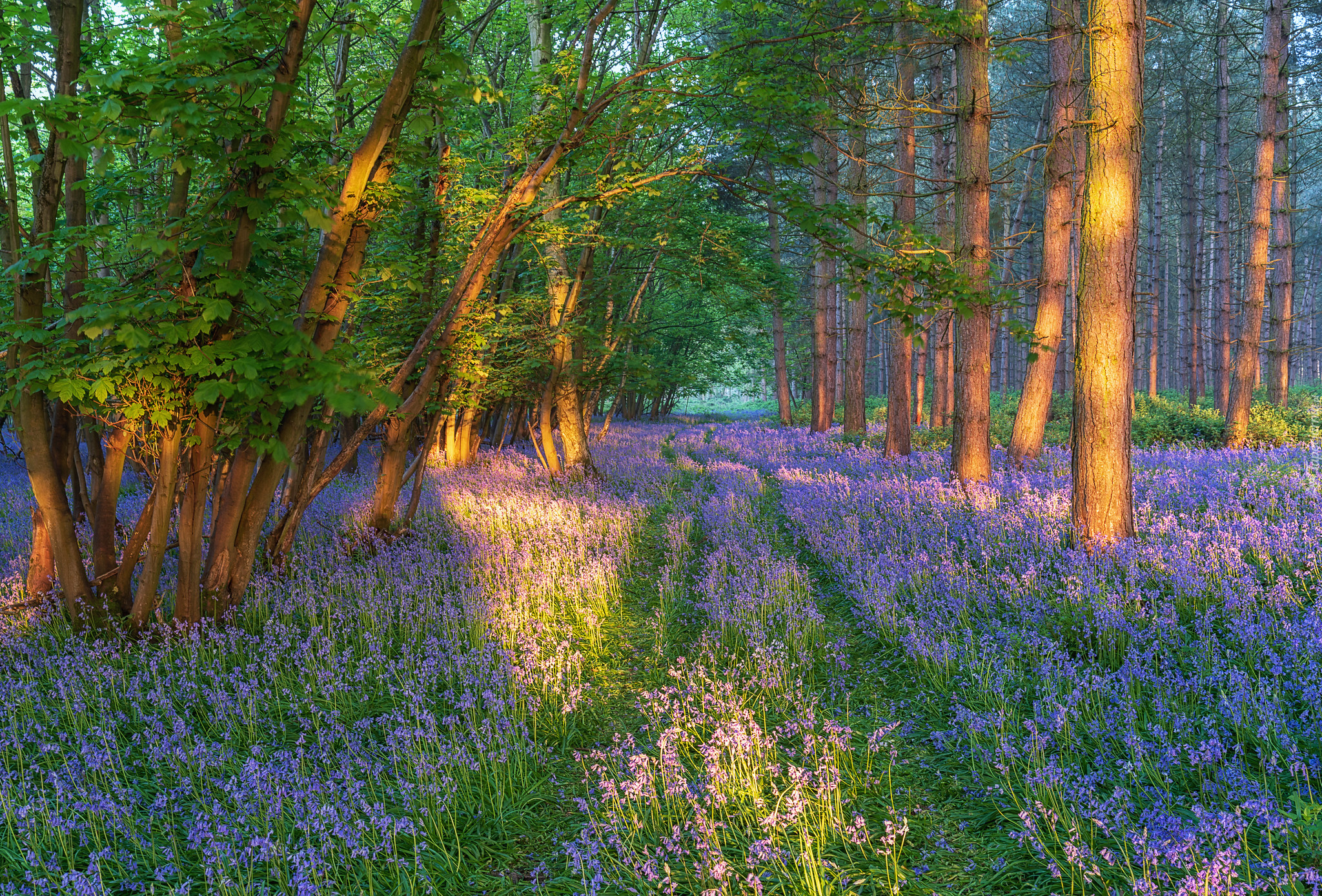 Edytor tapety: Wiosenne kwiaty pod drzewami w słonecznym blasku
