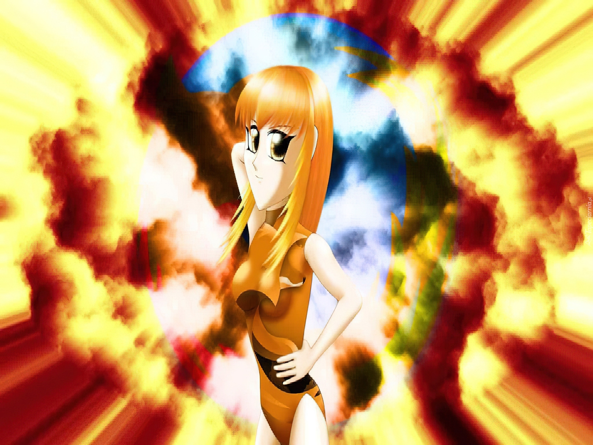 Edytor tapety: postać, kobieta, dym, ogień, lis, FireFox