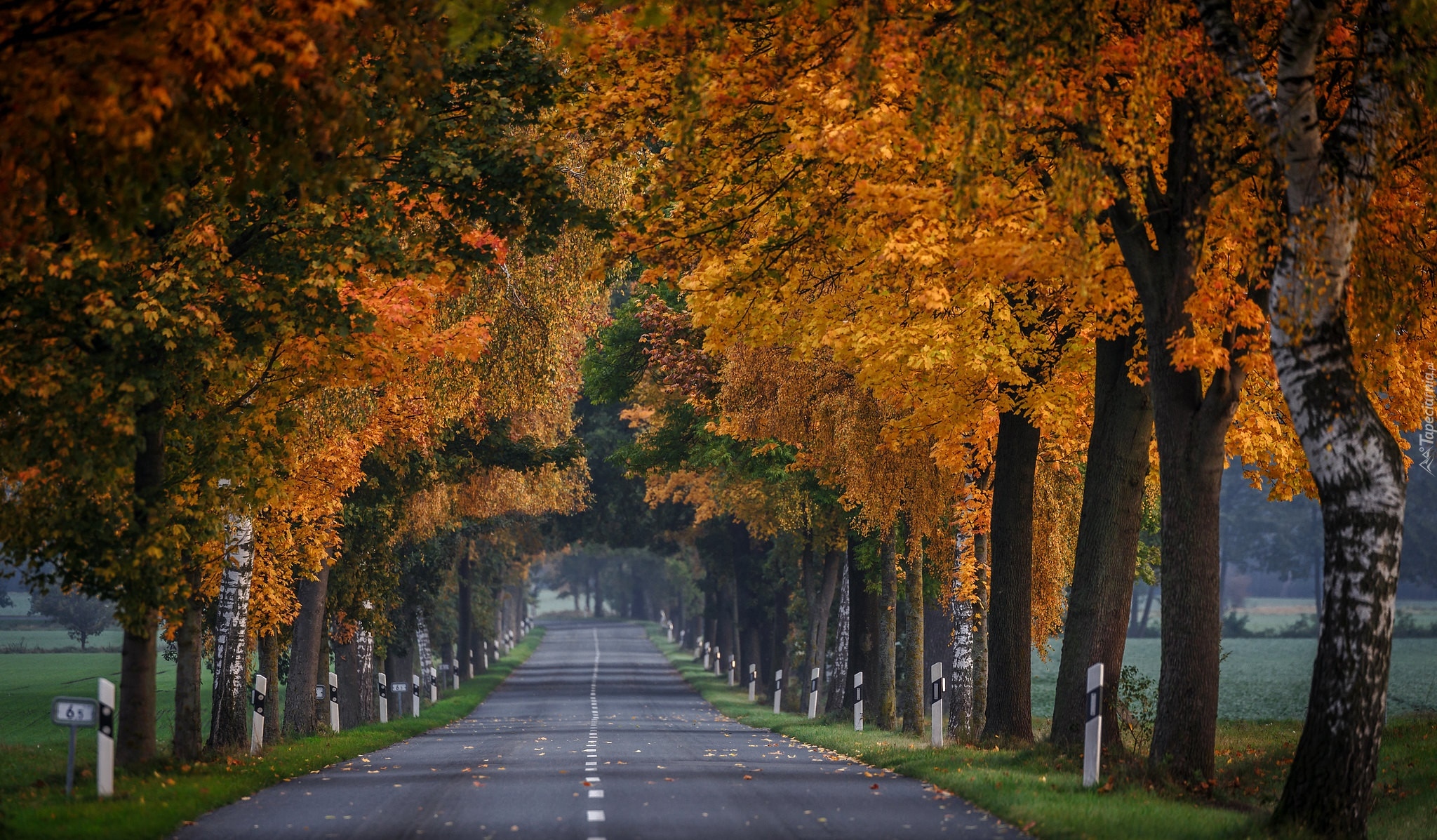Edytor tapety: Asfaltowa droga wśród jesiennych drzew