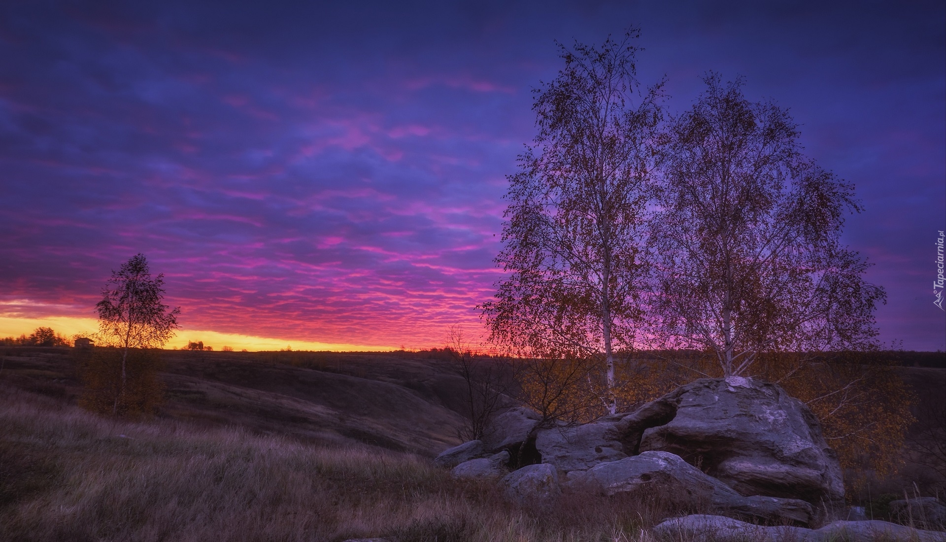 Edytor tapety: Brzozy w zachodzącym słońcu