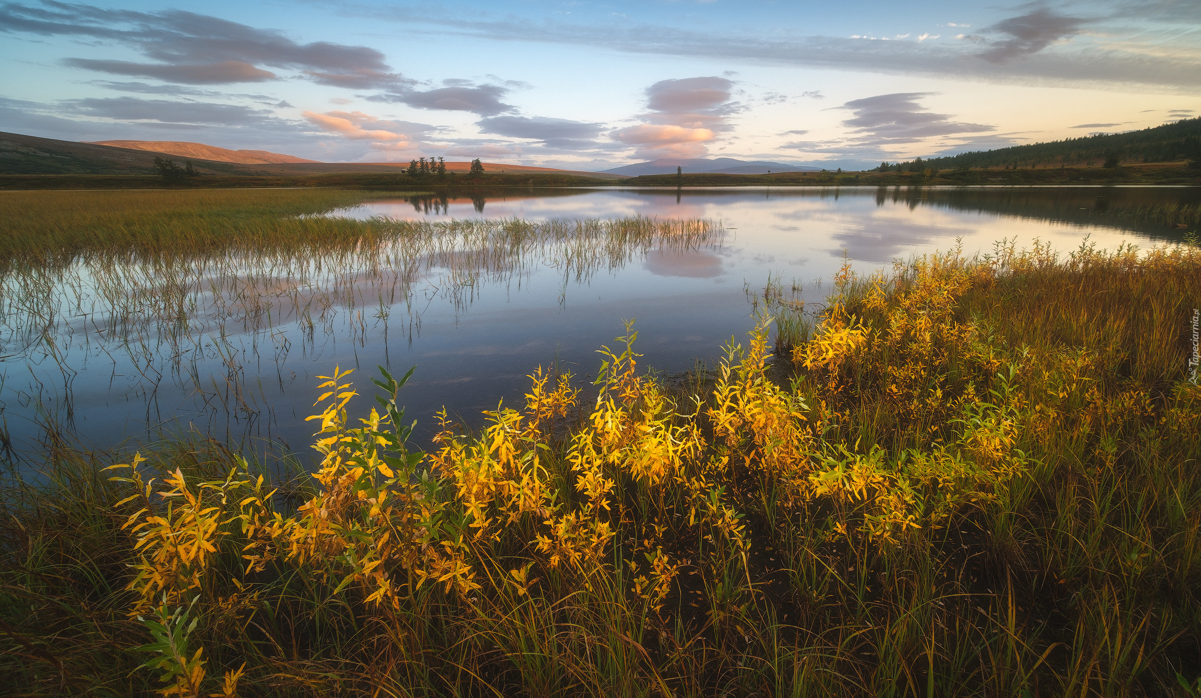 Edytor tapety: Jesienna roślinność nad jeziorem Domashnoye w Rosji