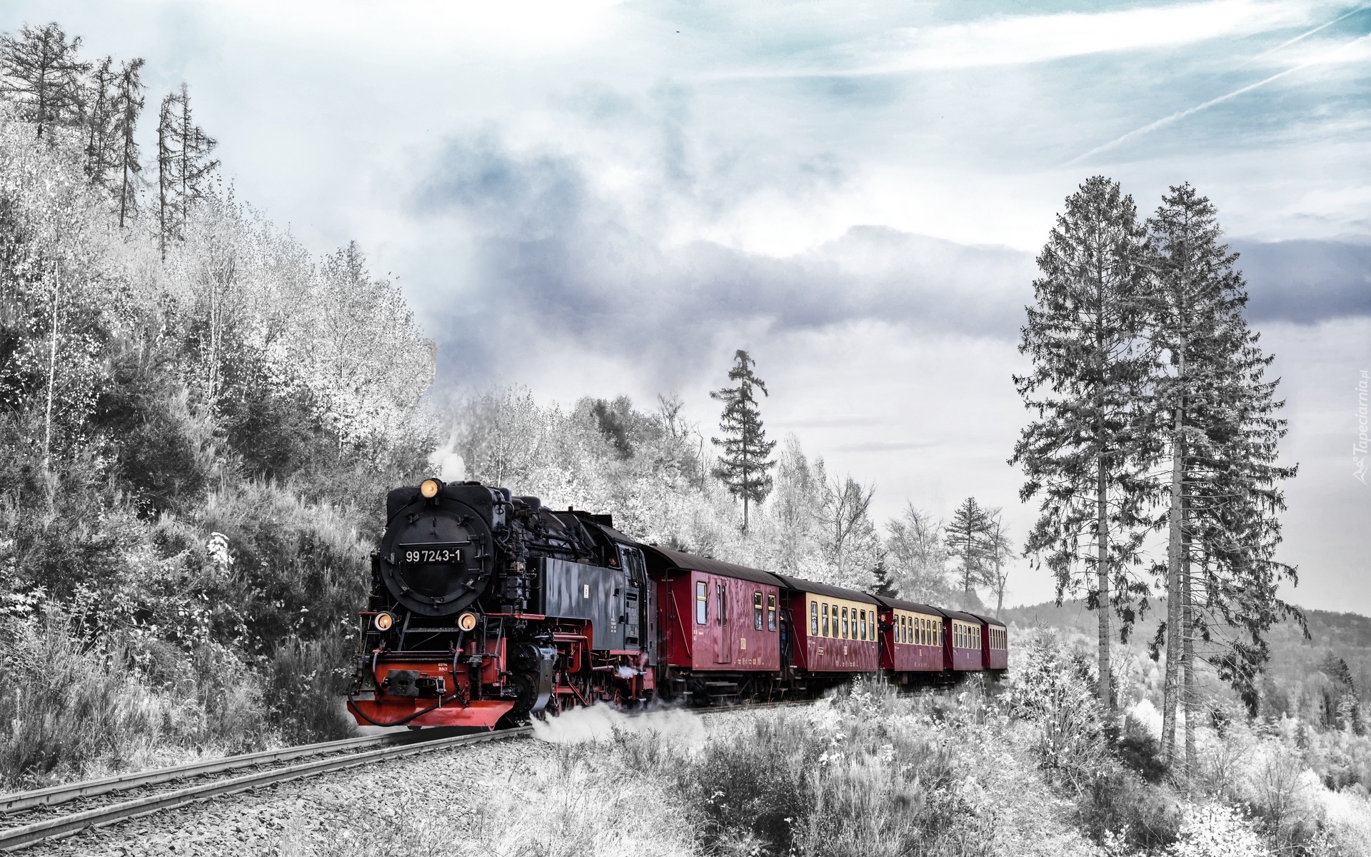 Edytor tapety: Pociąg z lokomotywą parową