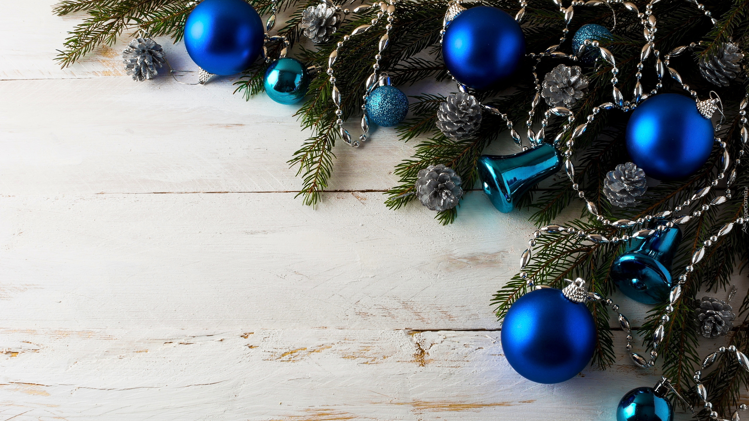 Edytor tapety: Gałązki ozdobione niebieskimi bombkami