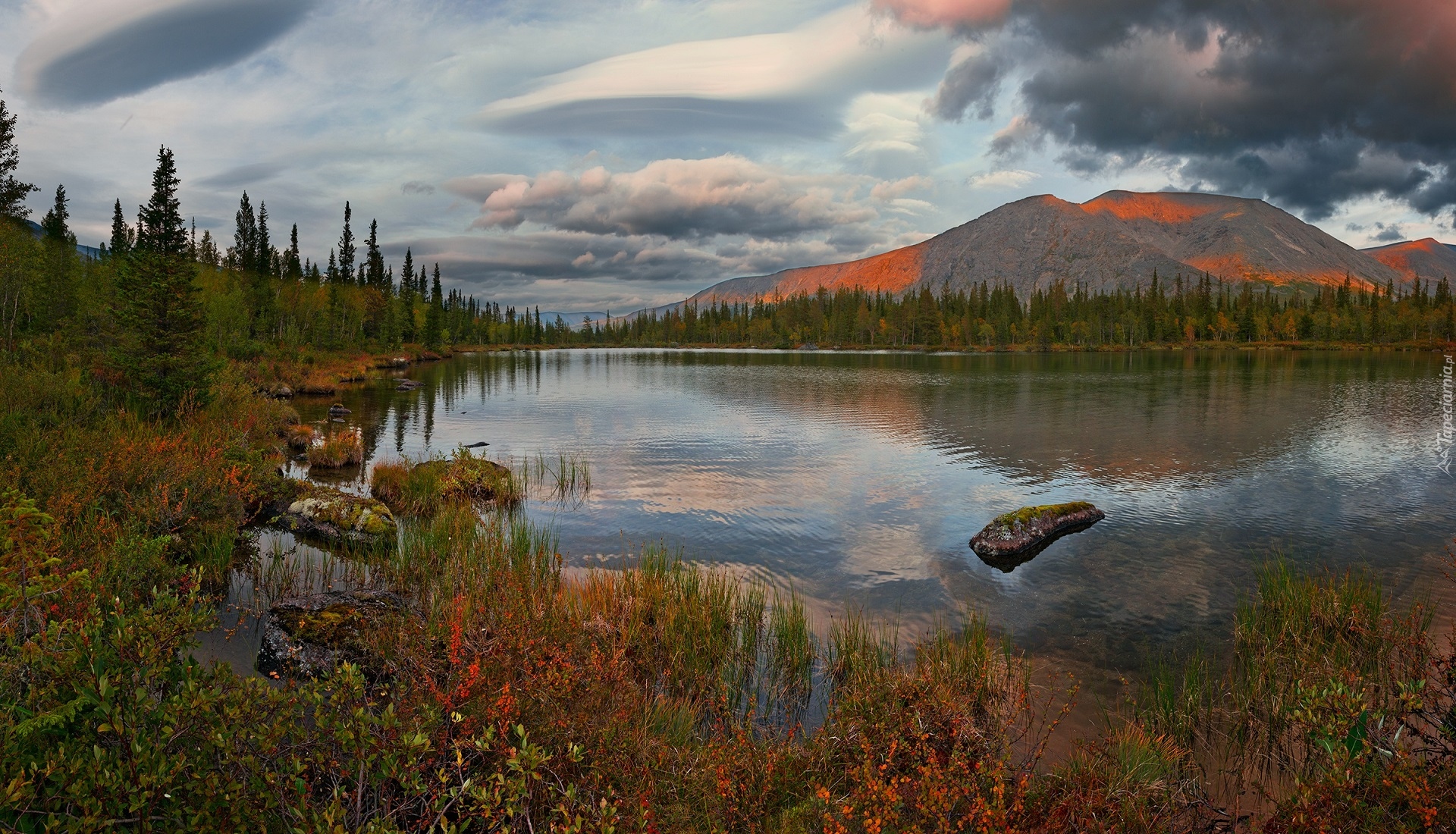 Edytor tapety: Krzewy i kamienie na brzegu jeziora Jack London