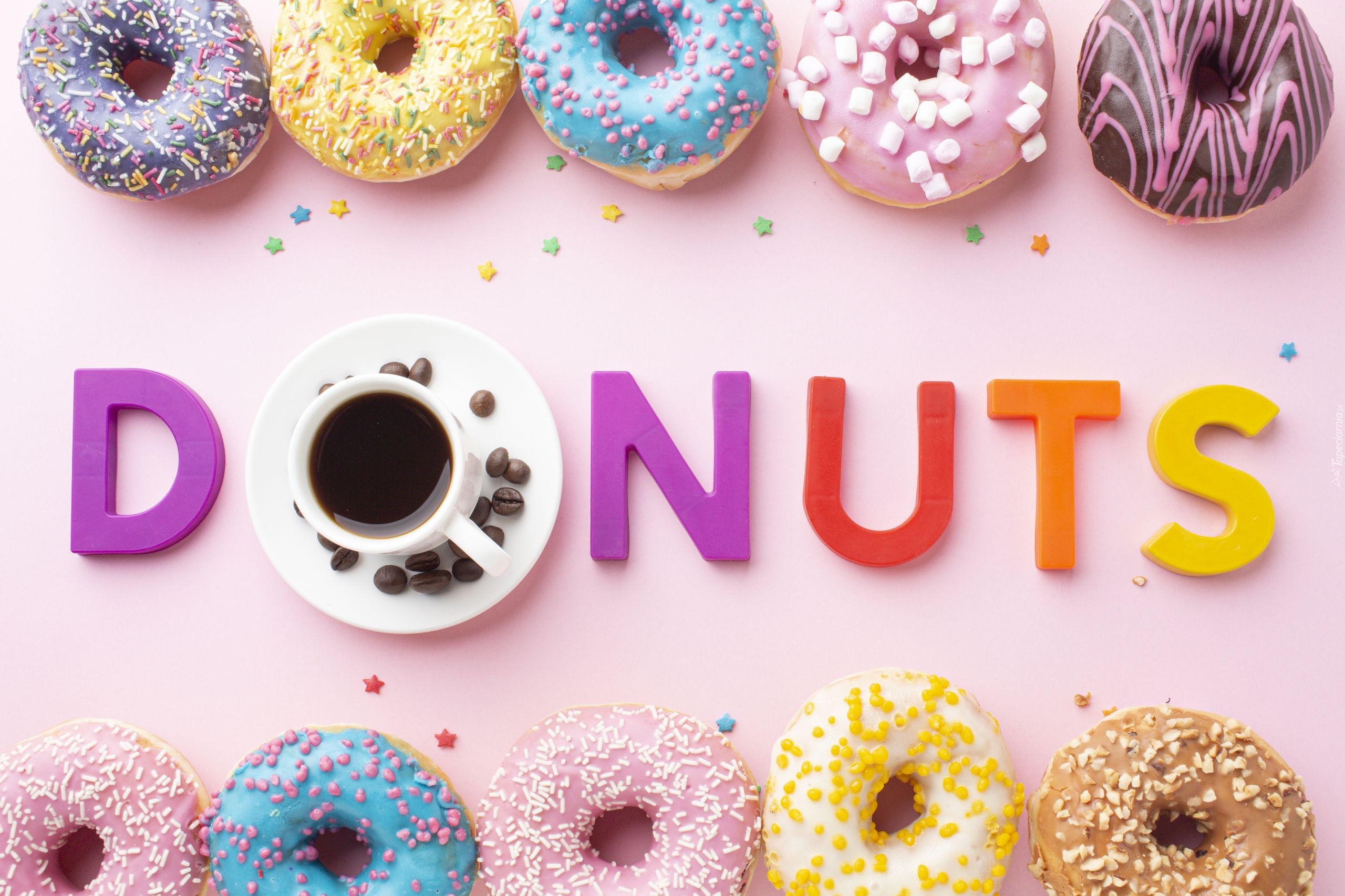 Edytor tapety: Donuty z kolorowym lukrem i posypką