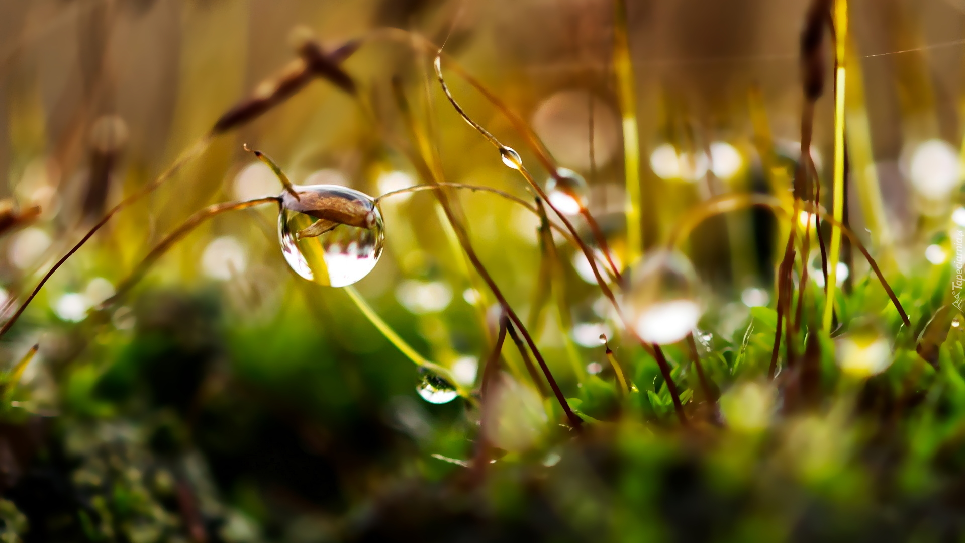 Edytor tapety: Krople rosy na mchu