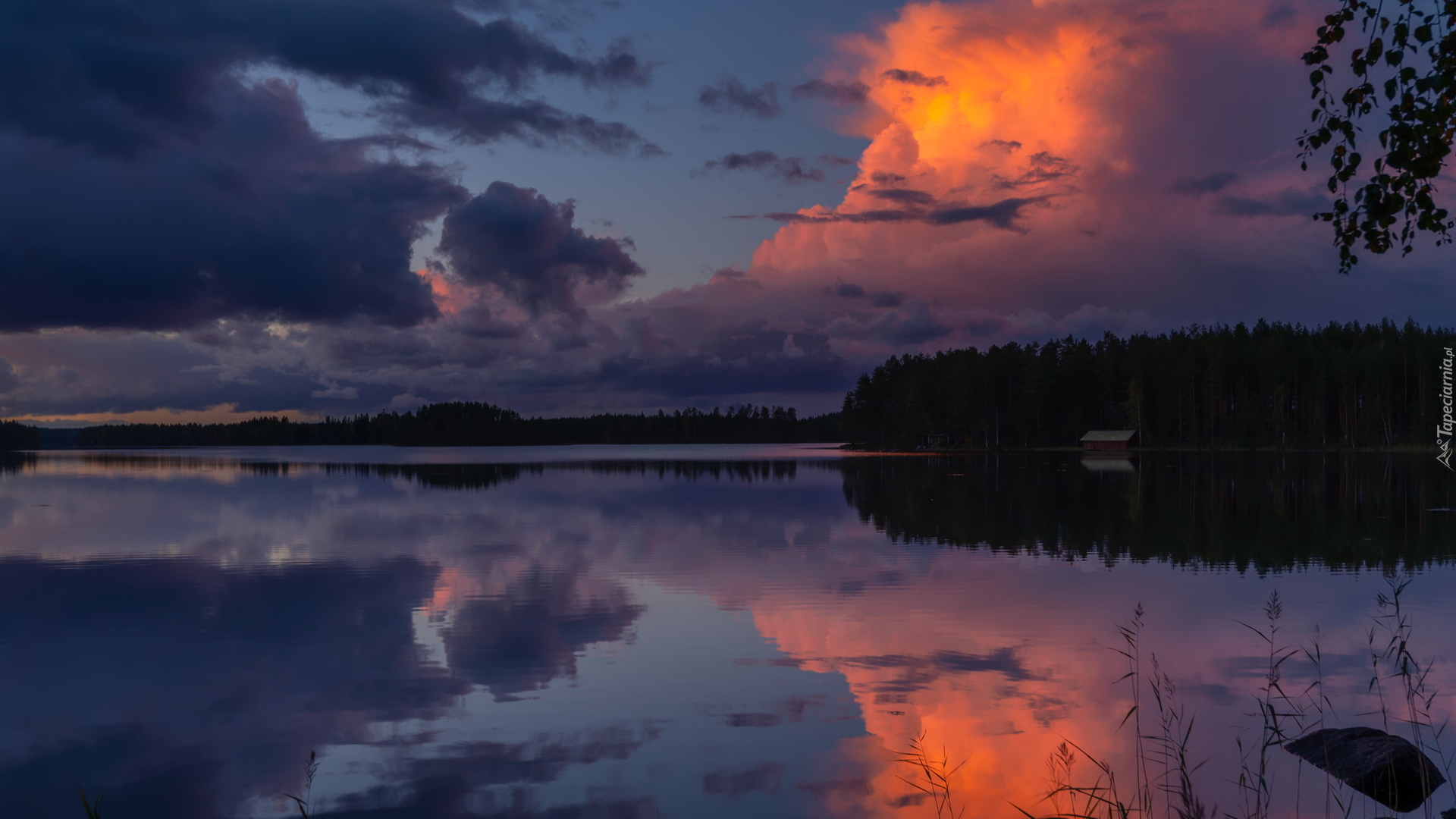 Edytor tapety: Zachód słońca nad jeziorem Korpijarvi