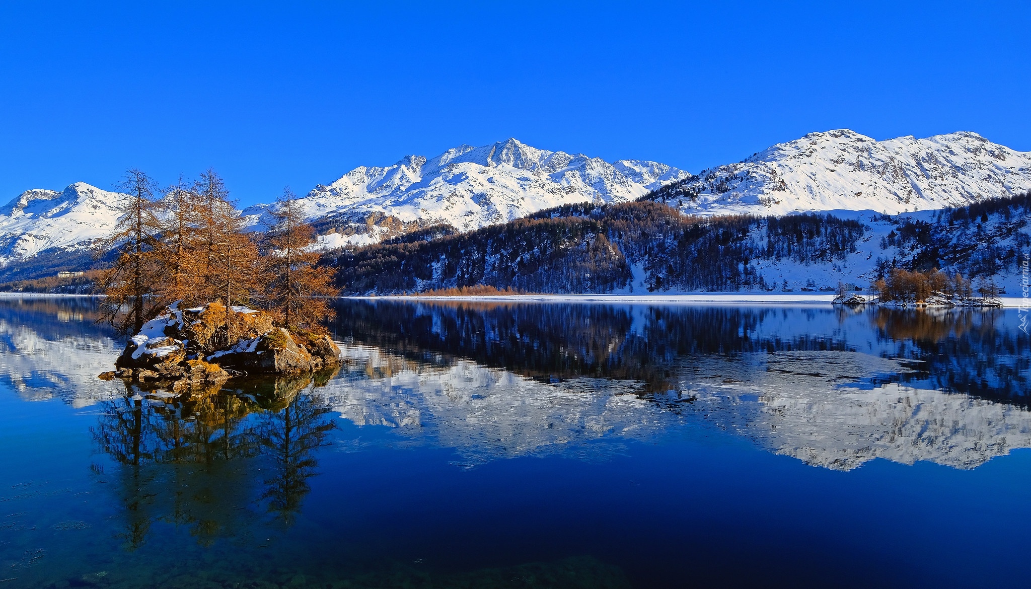 Edytor tapety: Wyspa na jeziorze Bergsee w Szwajcarii