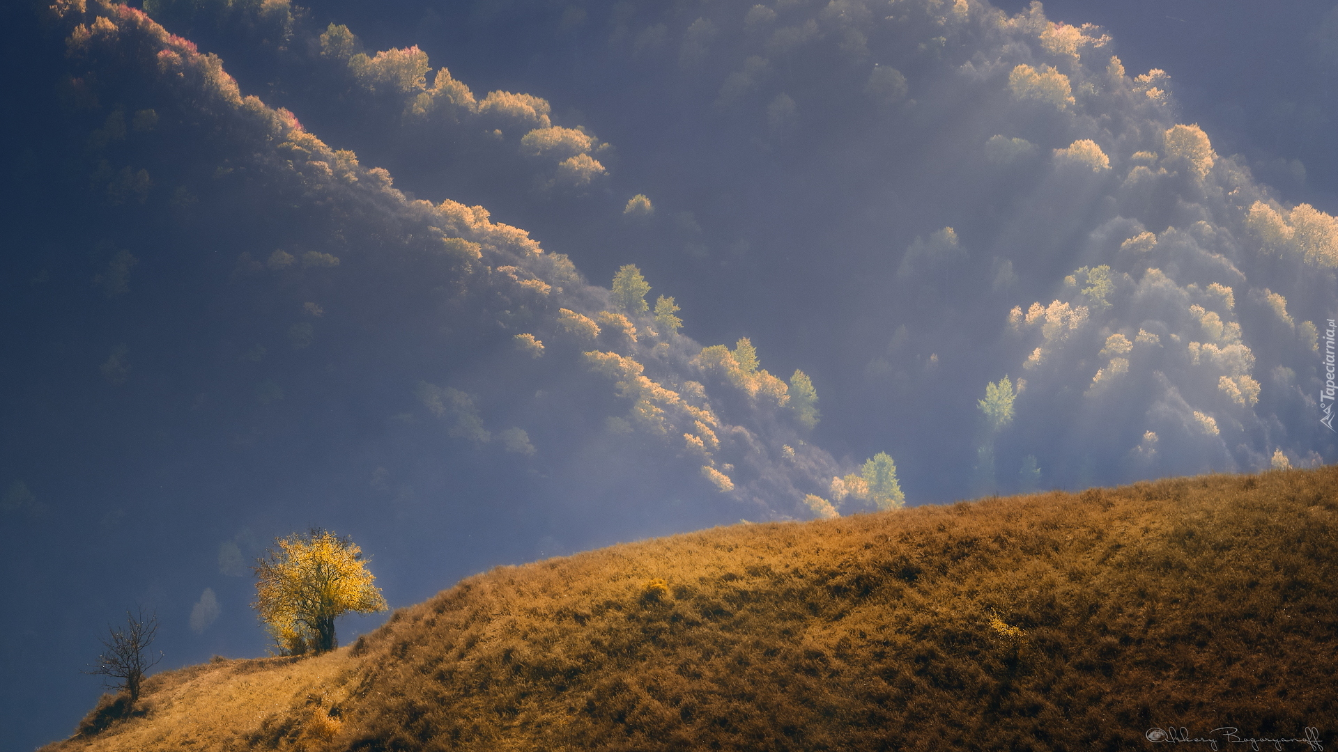 Edytor tapety: Drzewa na wzgórzu jesienią