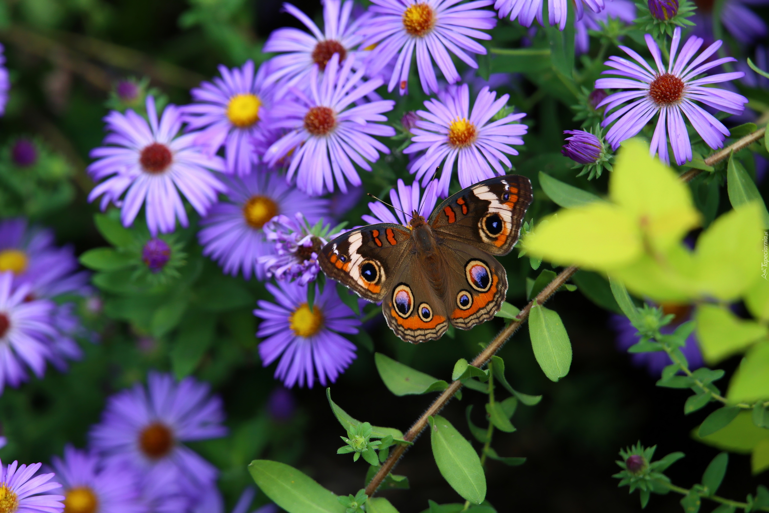 Edytor tapety: Motyl na fioletowych astrach
