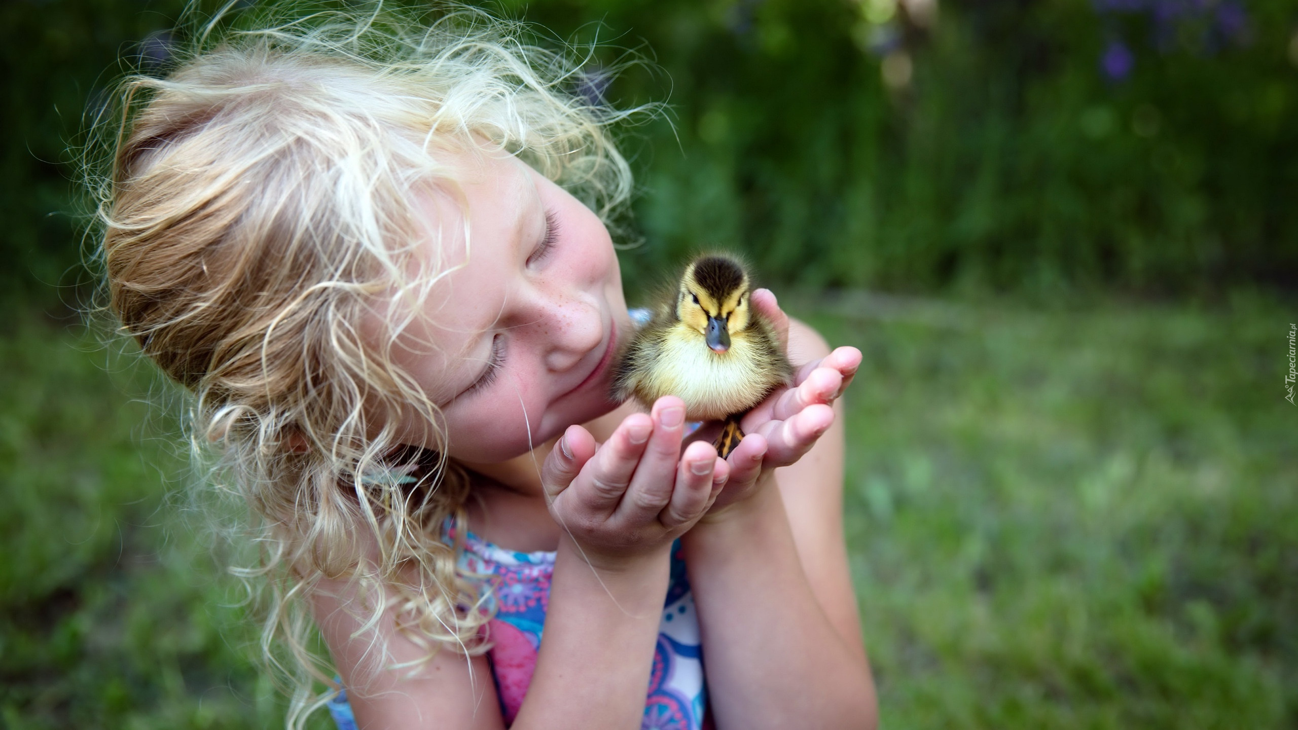 Edytor tapety: Dziewczynka z kaczuszką w dłoniach