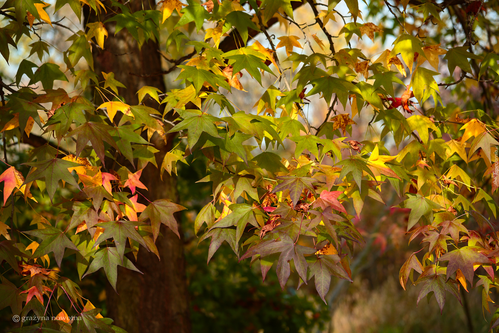 Edytor tapety: Kolorowe jesienne liście na drzewie