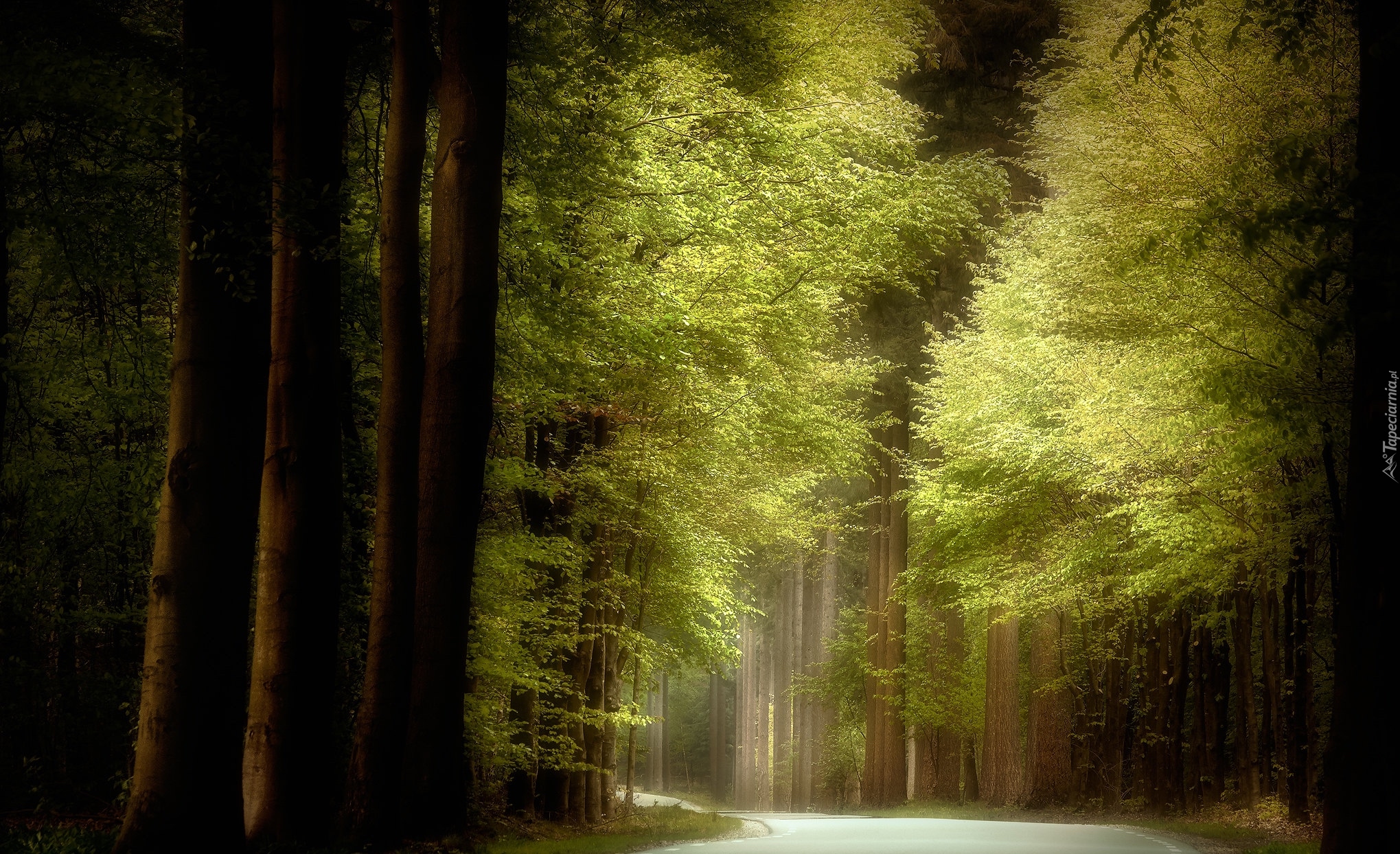 Edytor tapety: Leśna droga wśród zielonych drzew