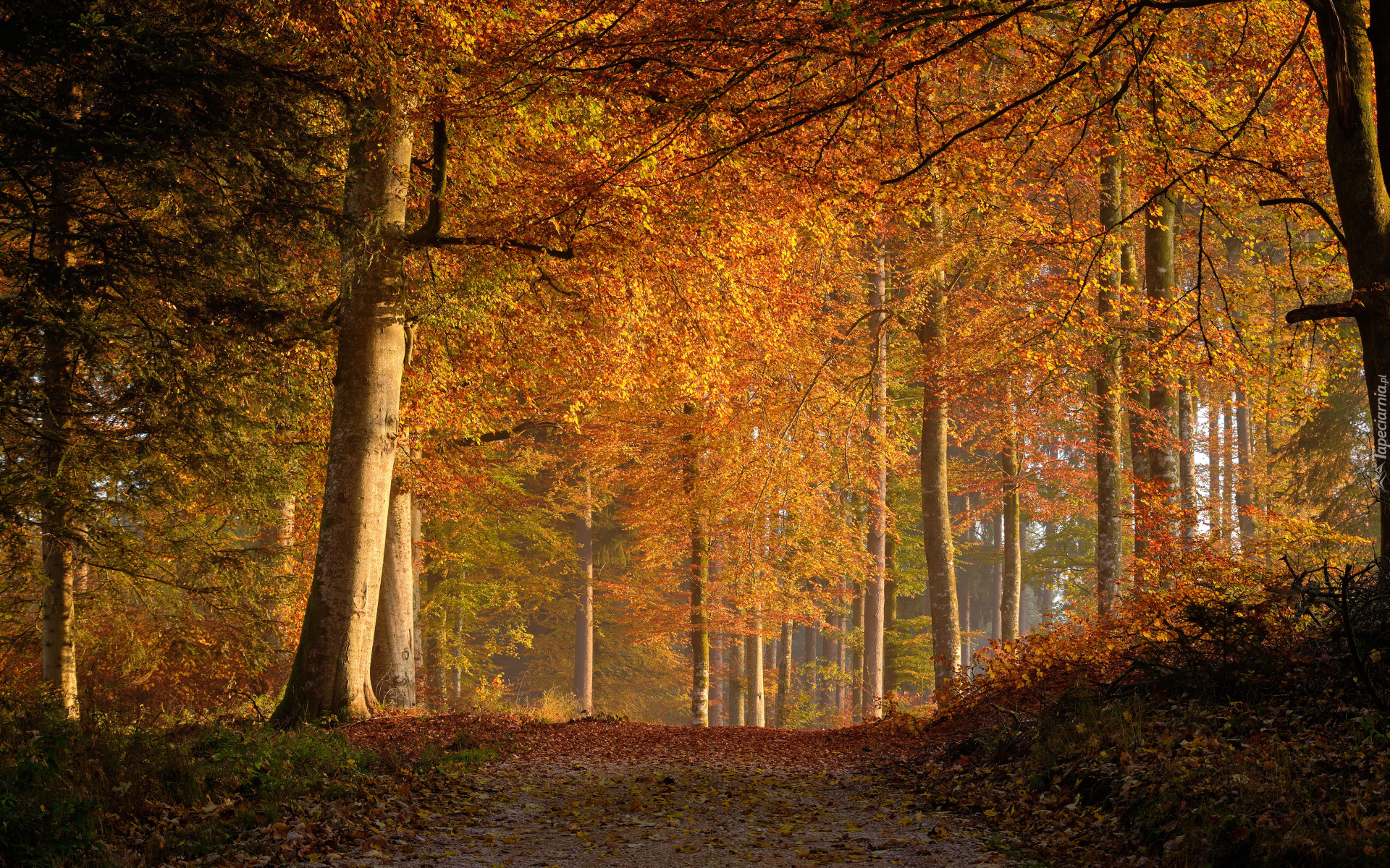 Edytor tapety: Szeroka ścieżka w jesiennym lesie