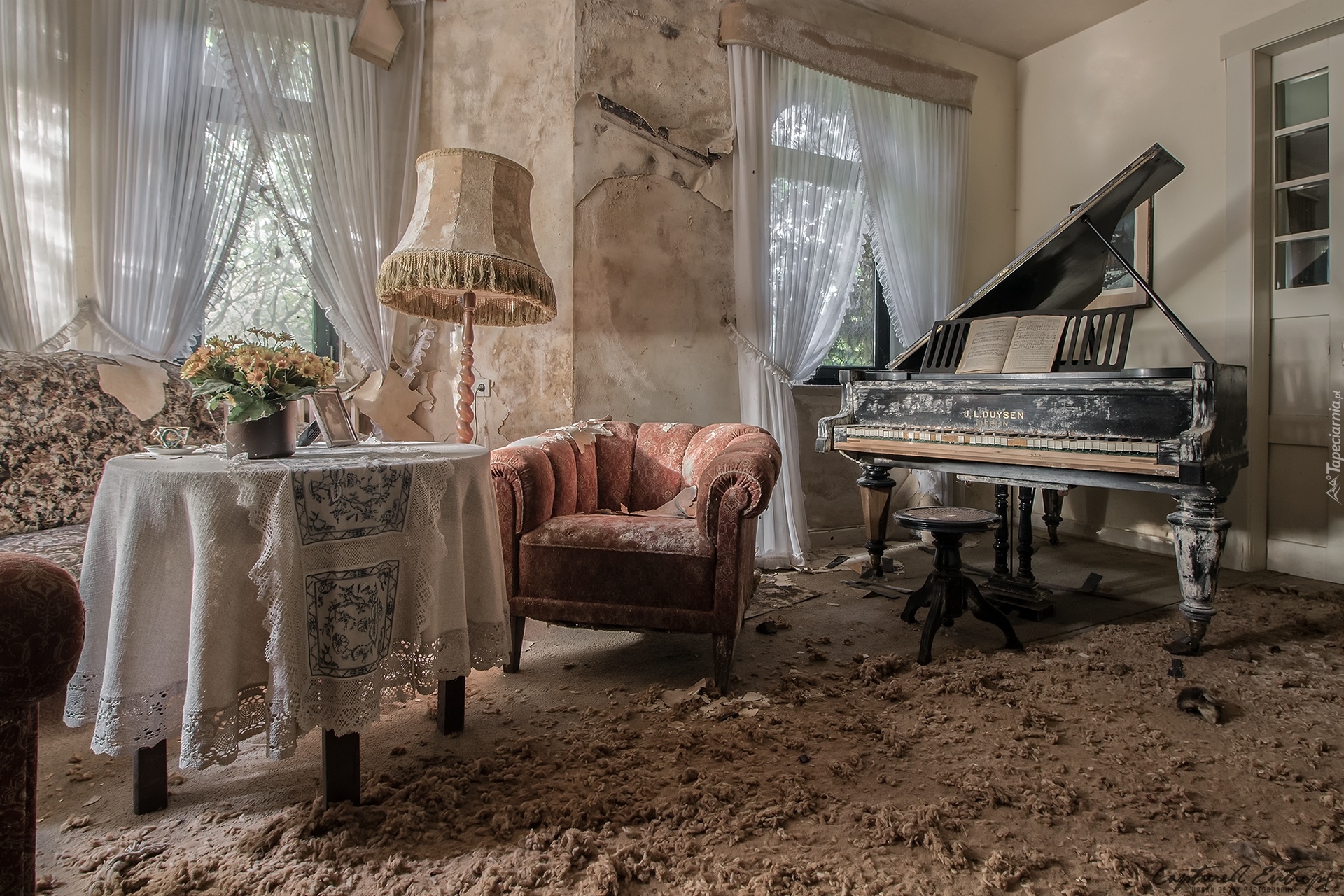 Edytor tapety: Fortepian w zaniedbanym pokoju