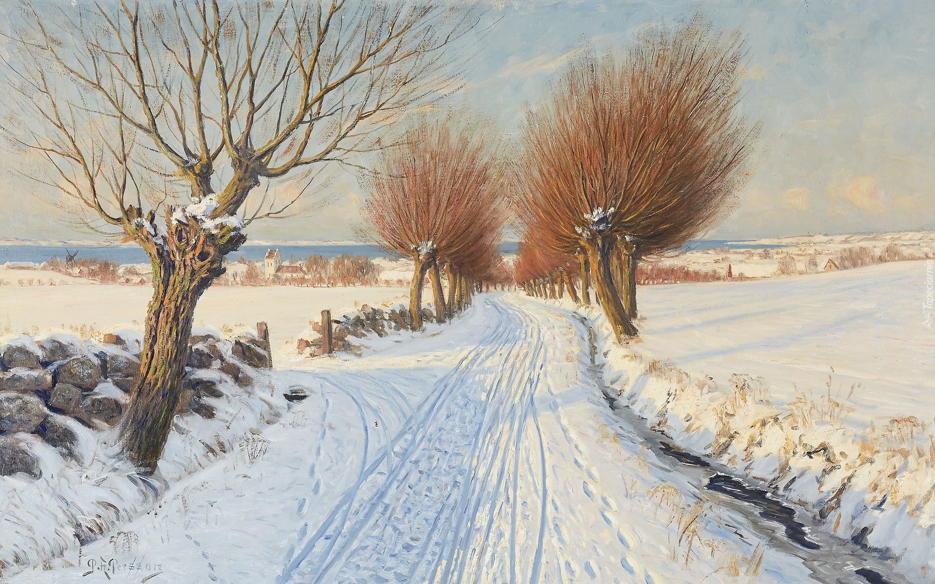 Edytor tapety: Wierzby przy zaśnieżonej drodze