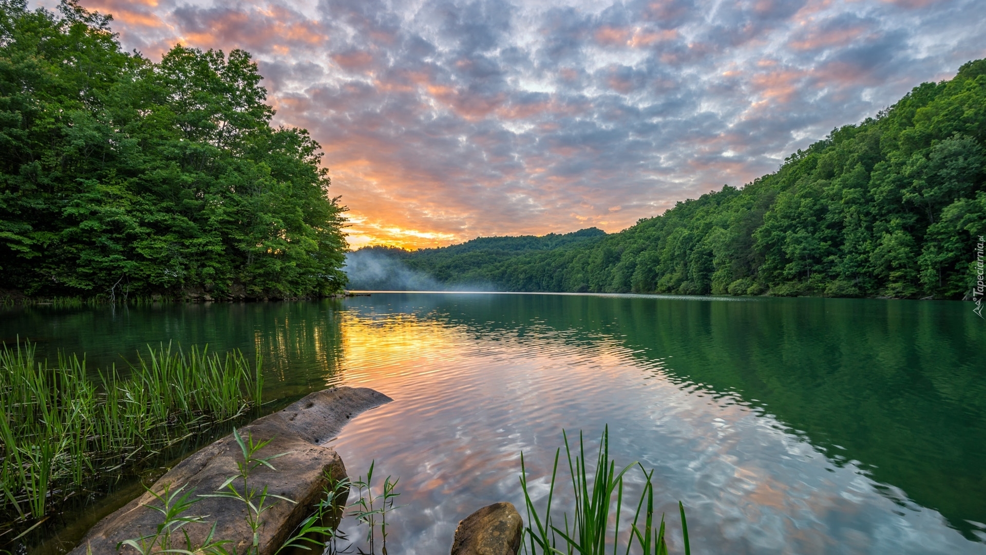 Edytor tapety: Jezioro w zielonym lesie