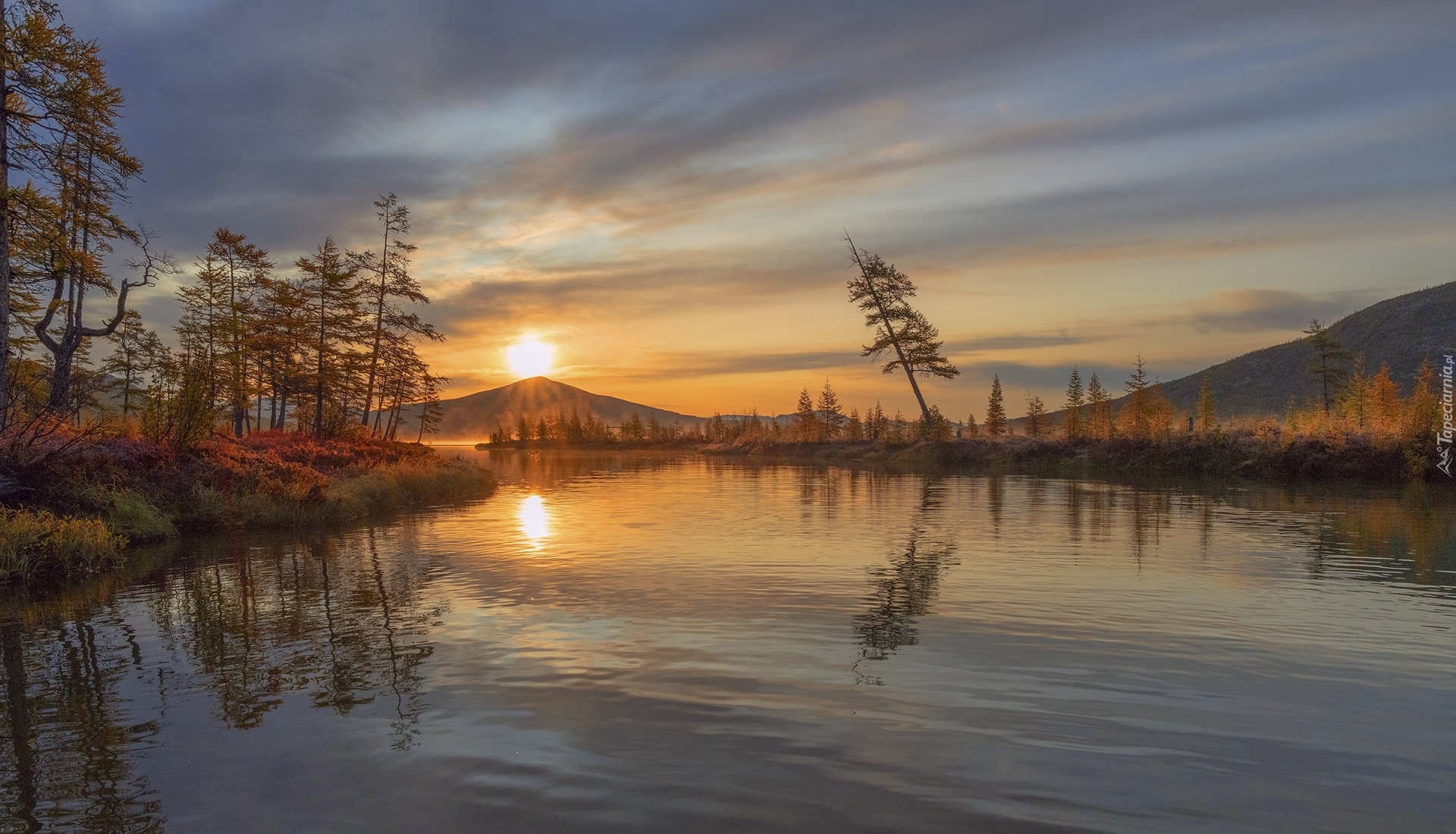 Edytor tapety: Rzeka Purga w blasku wschodzącego słońca