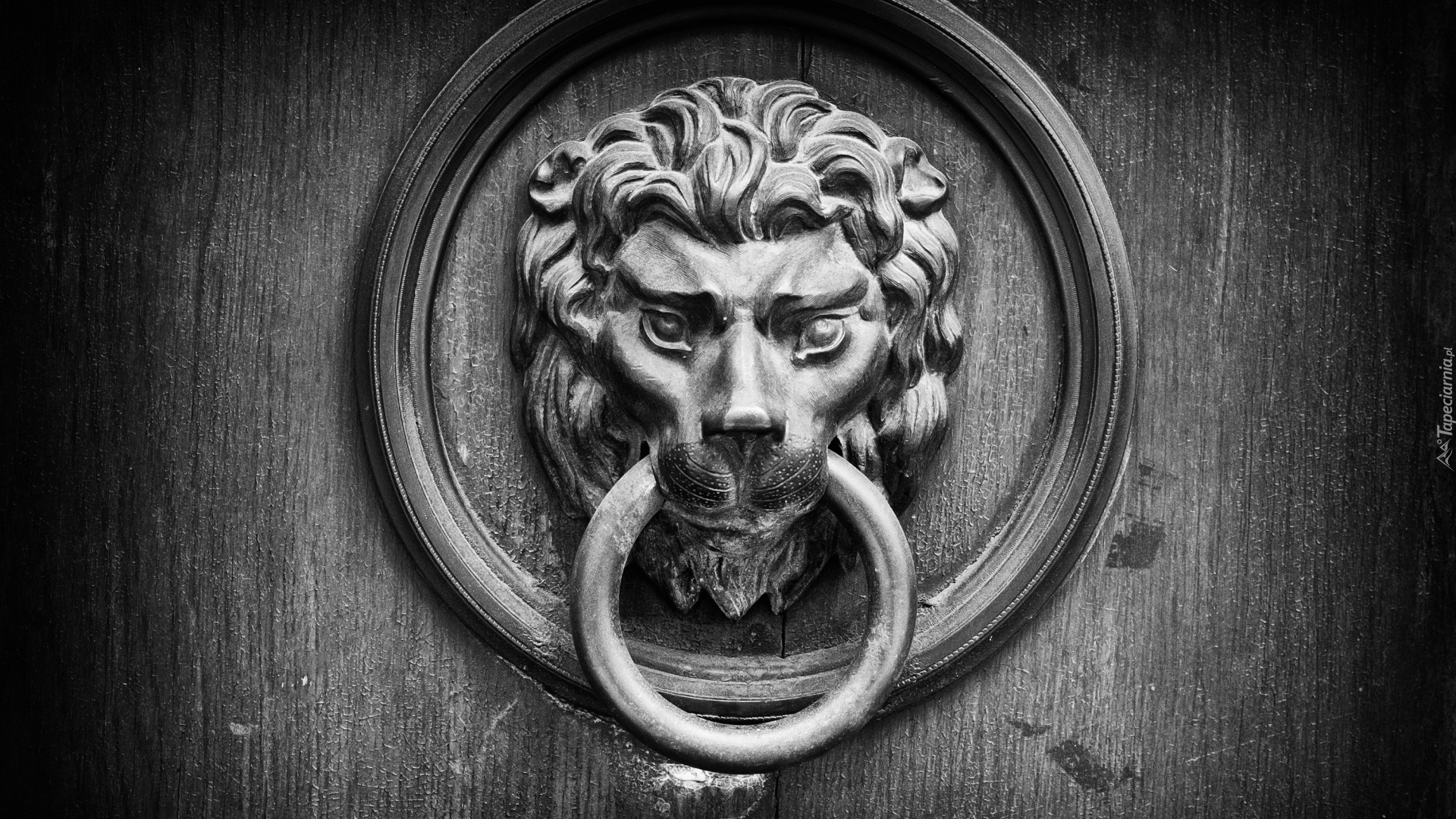 Edytor tapety: Kołatka z głową lwa na drzwiach